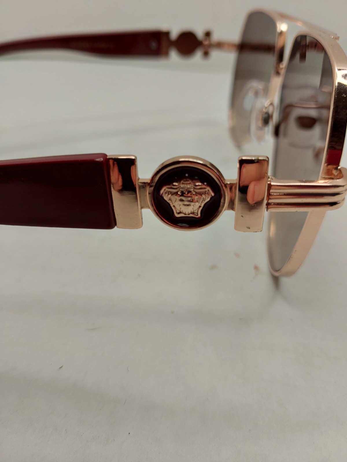 как выглядит Maroon Gold Hip Hop Large Aviator Sunglasses W/ Lion Symbol фото