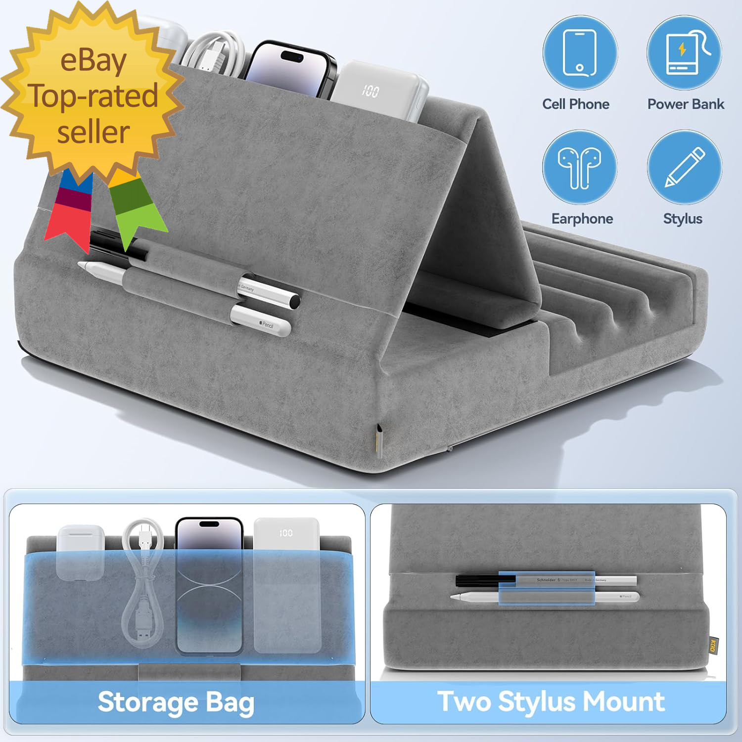 как выглядит Tablet Pillow Holder, Foldable Ipad Stand for Lap, Bed and Desk Tablet Soft фото