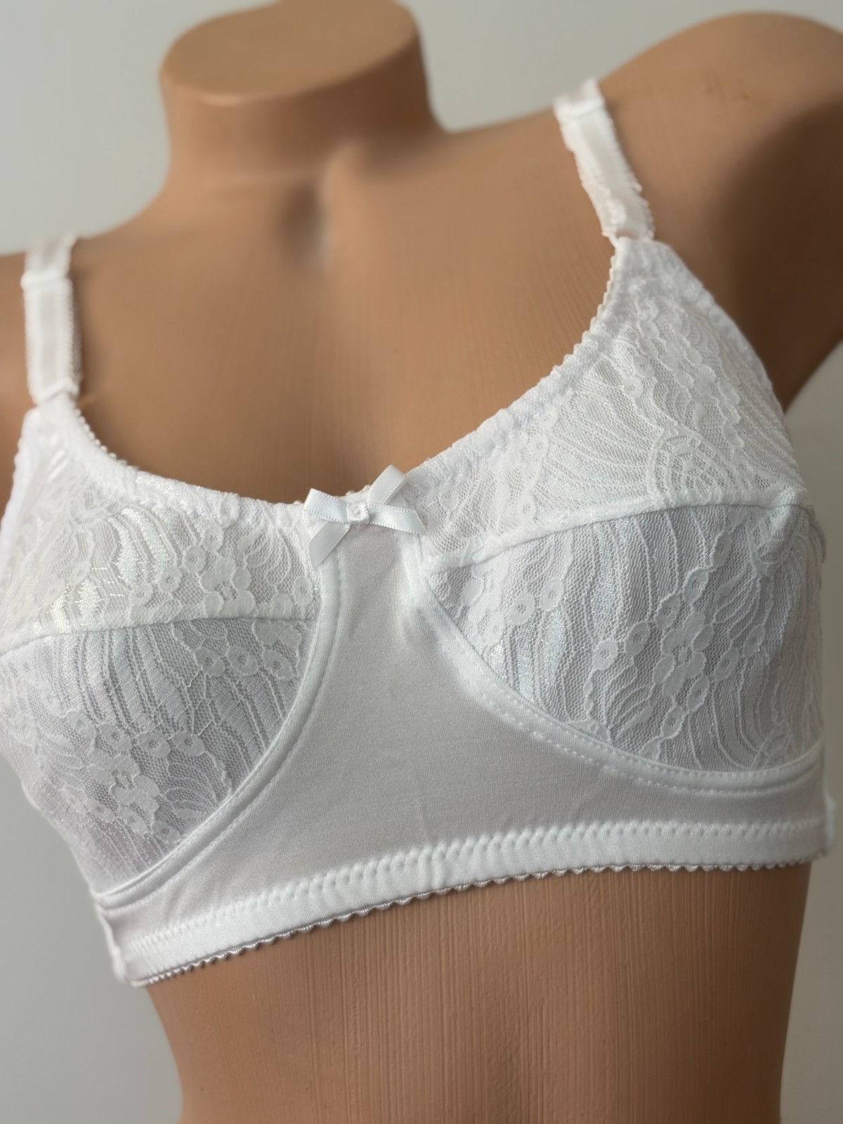 как выглядит Bra lace cups, non wired, black, white or cream 34d - 44c фото