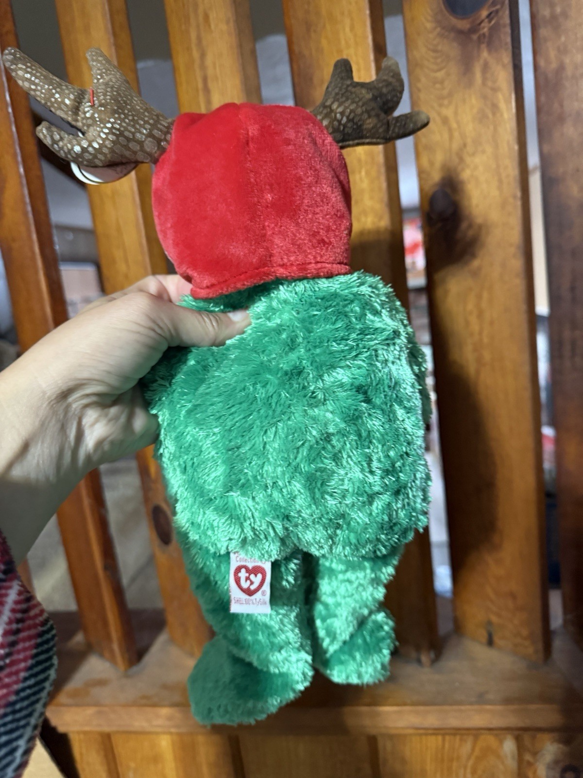 как выглядит Ty Beanie Baby 2002 Holiday Teddy the Bear Green Plush Retired Mint Antlers фото