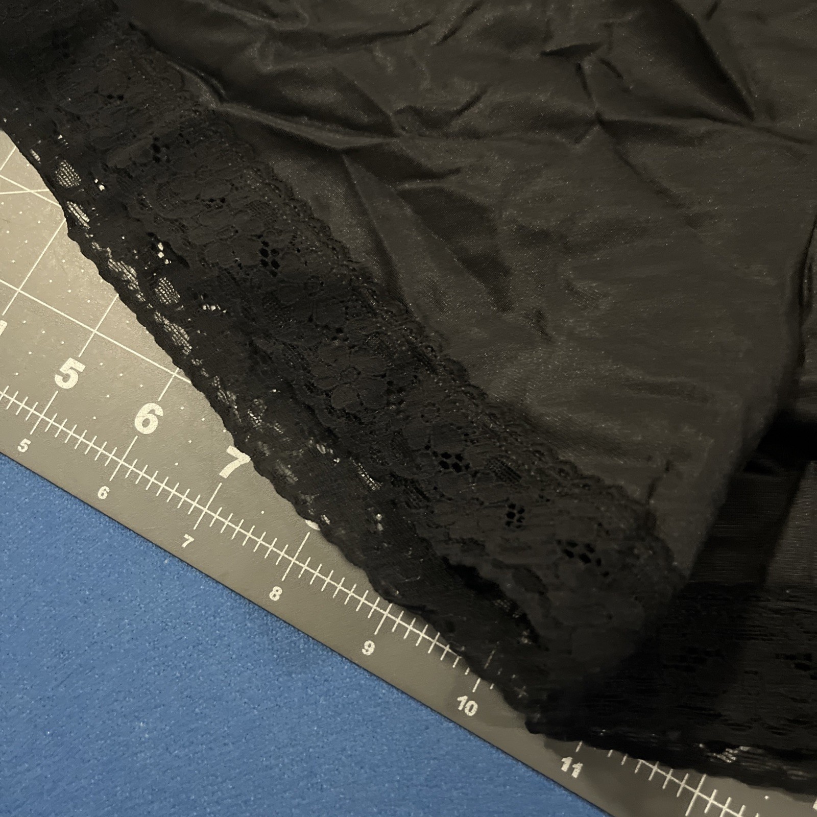 как выглядит VTG Vanity Fair Silky Slip Shorts Size L 16 Black Lace Trim Comfort Satin Nylon фото