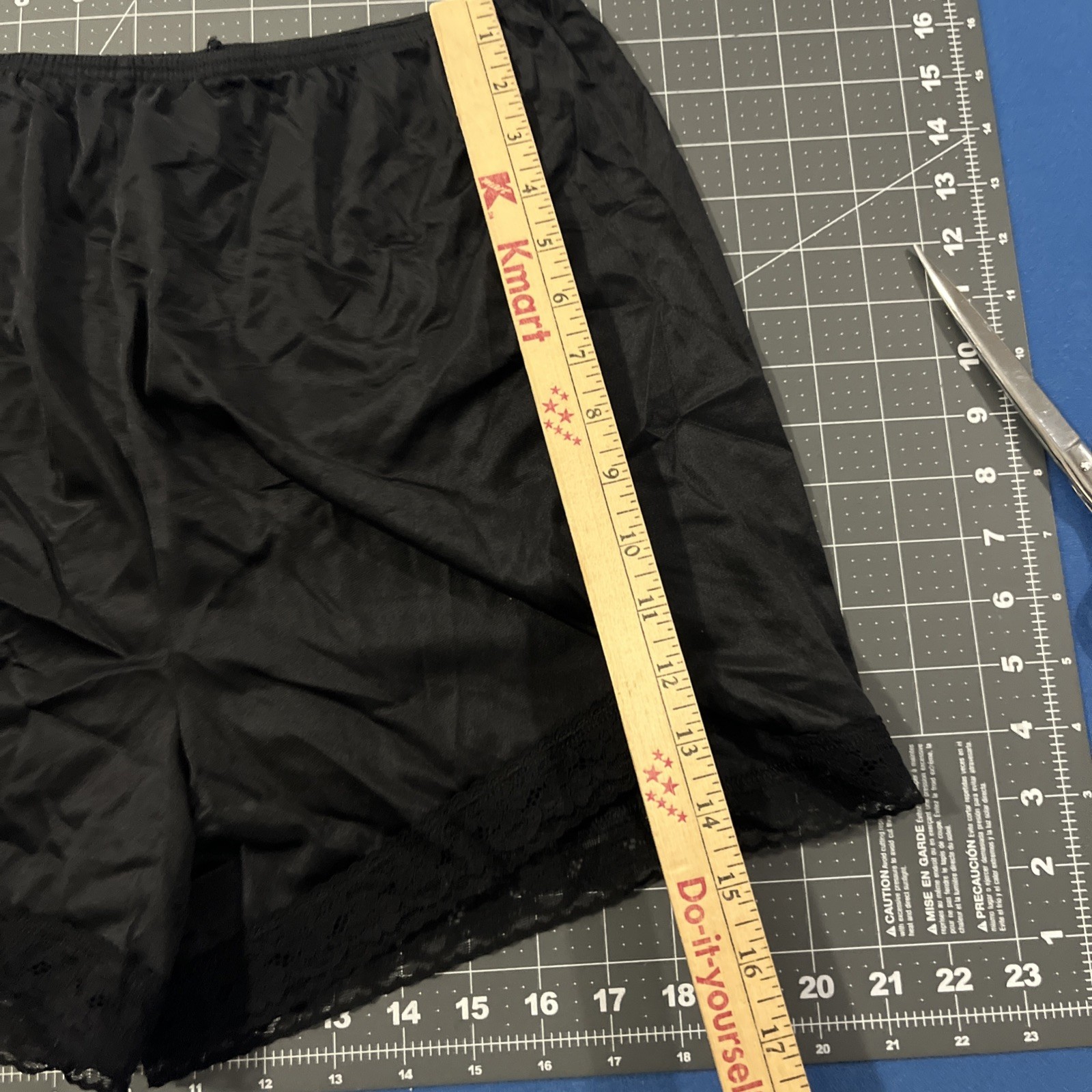 VTG Vanity Fair Silky Slip Shorts Size L 16 Black Lace Trim Comfort Satin Nylon