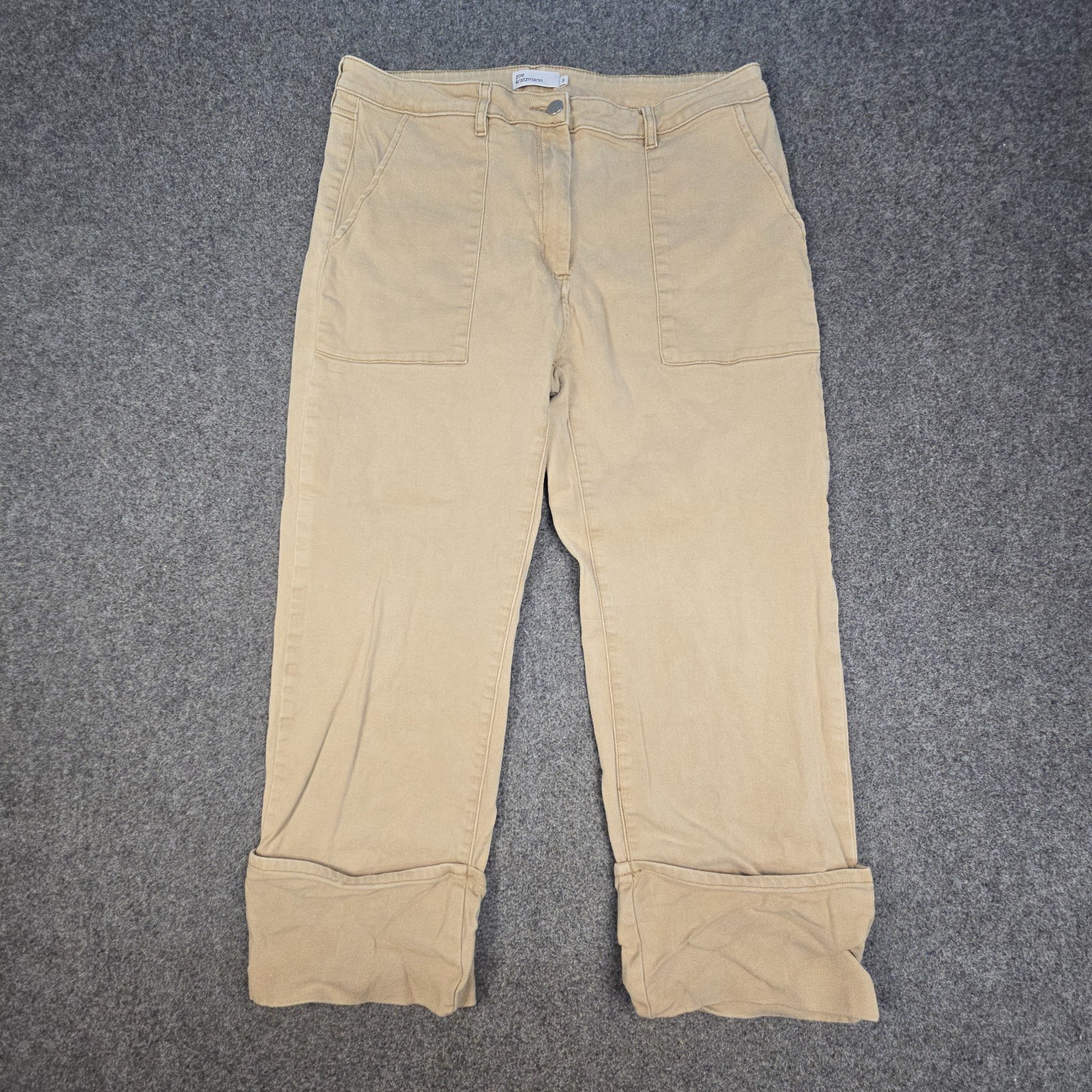 zoe kratzmann pants womens 3 beige Straight fold hem zip fly cropped size 3