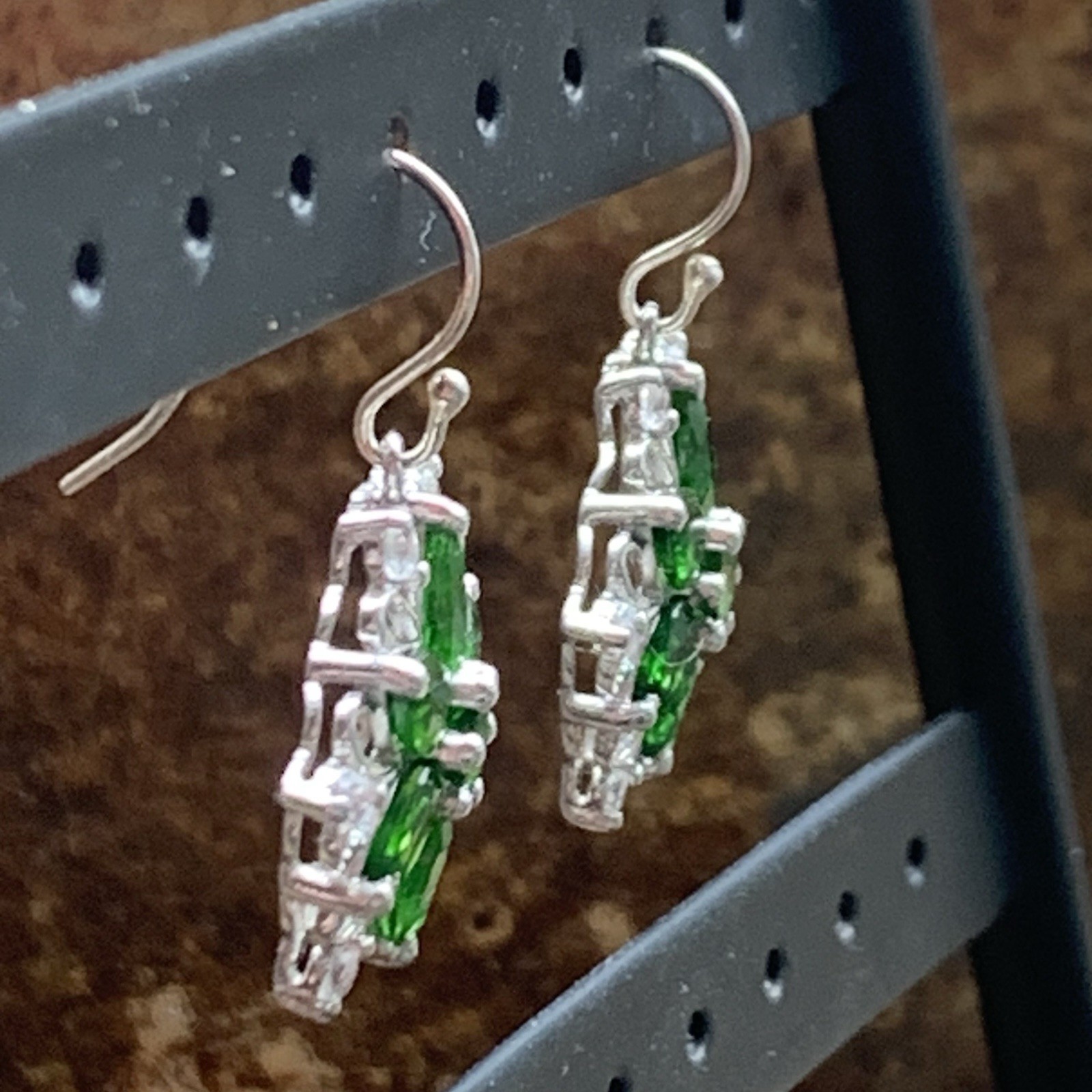 Sterling Silver, Emerald Green and Zircon Dangle Earrings