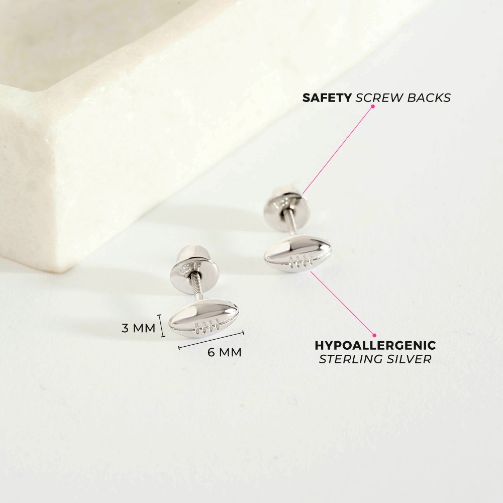 Polished Football Kids / Children's / Girl Earrings Screw Back - Sterling Silver