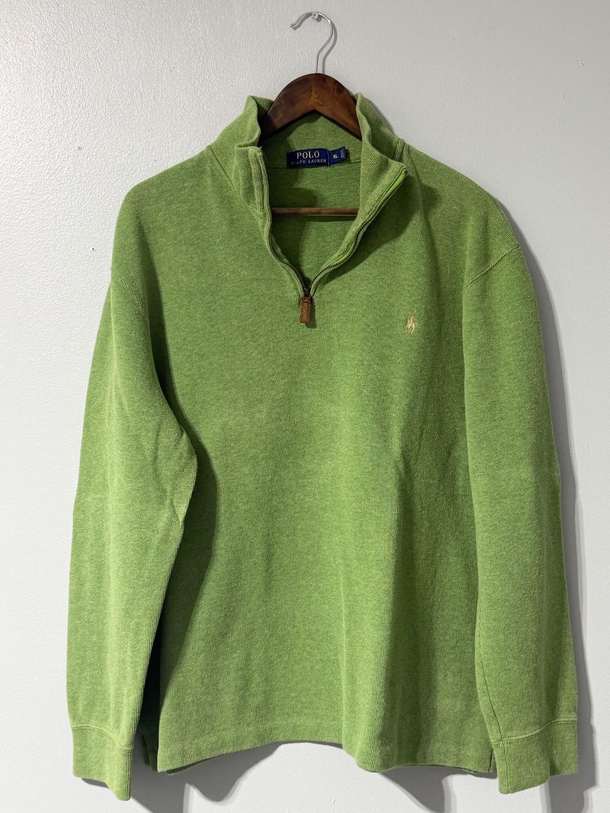 как выглядит Polo Ralph Lauren Sweater Quarter Zip Pullover Mens Sz XL Green 1/4 Pony фото