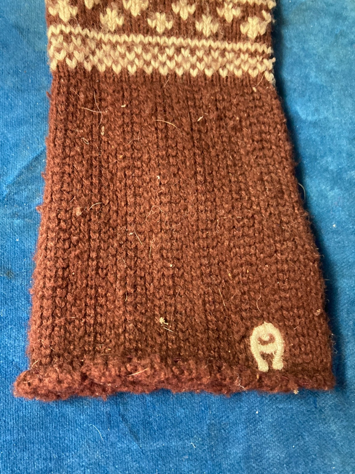 как выглядит Vintage ETIENNE AIGNER Ladies Burgundy w/ Ivory Trim Knit Winter Gloves ONE SIZE фото