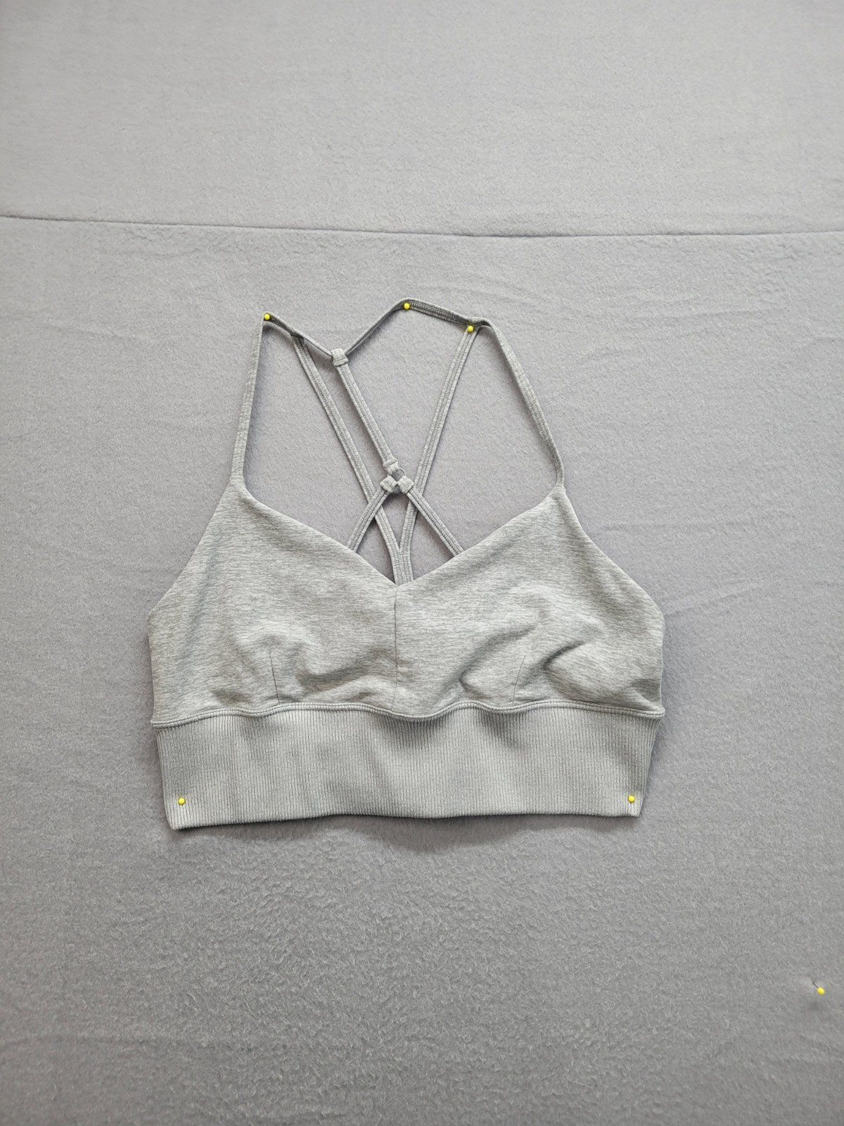 как выглядит Alo Womens Sports Bra L Gray Ribbed Cross Back Cropped Top Stretch Athletic Yoga фото