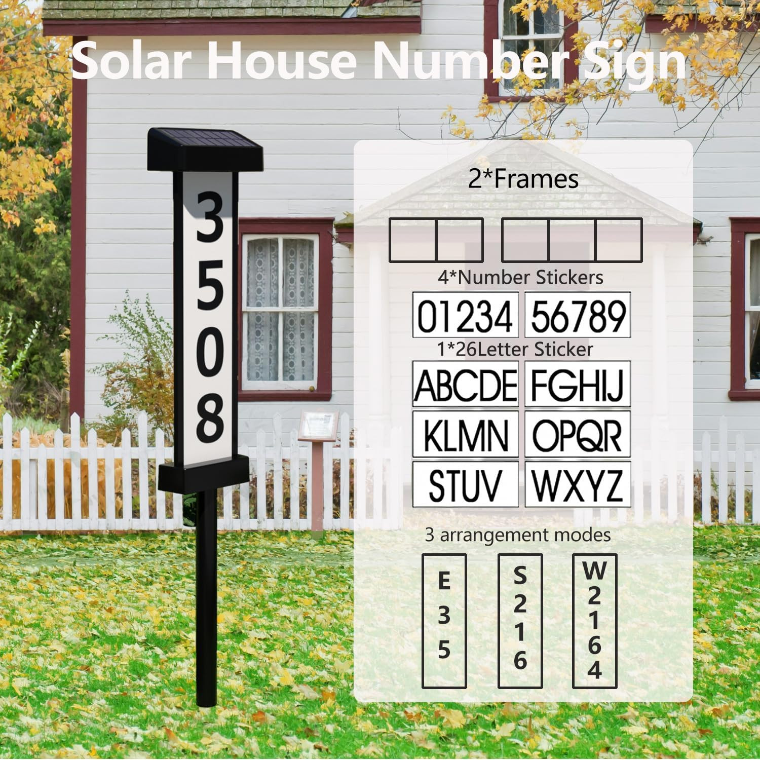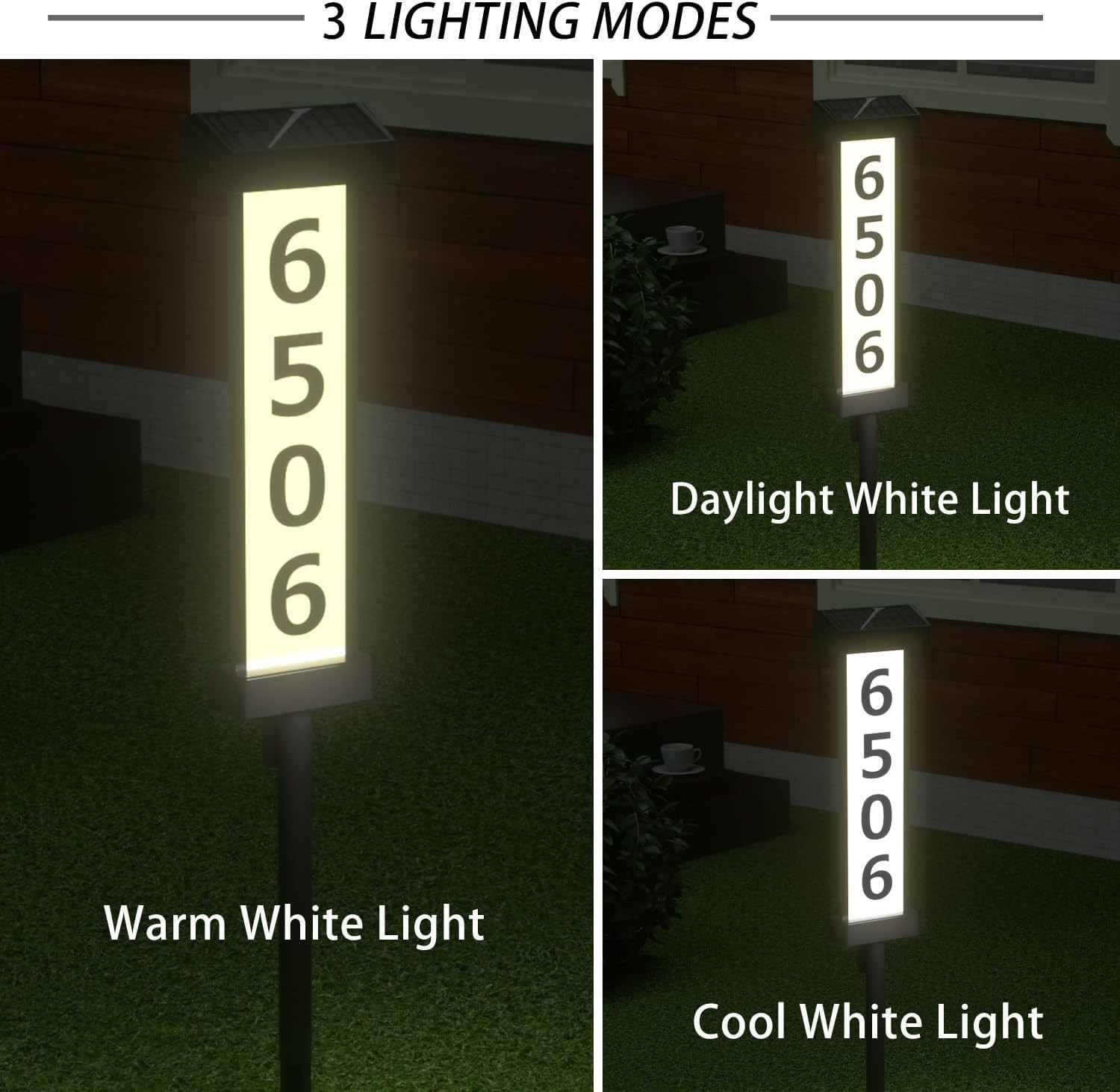 Double-Sided Solar Address Sign with LED House Numbers for Home and Yard