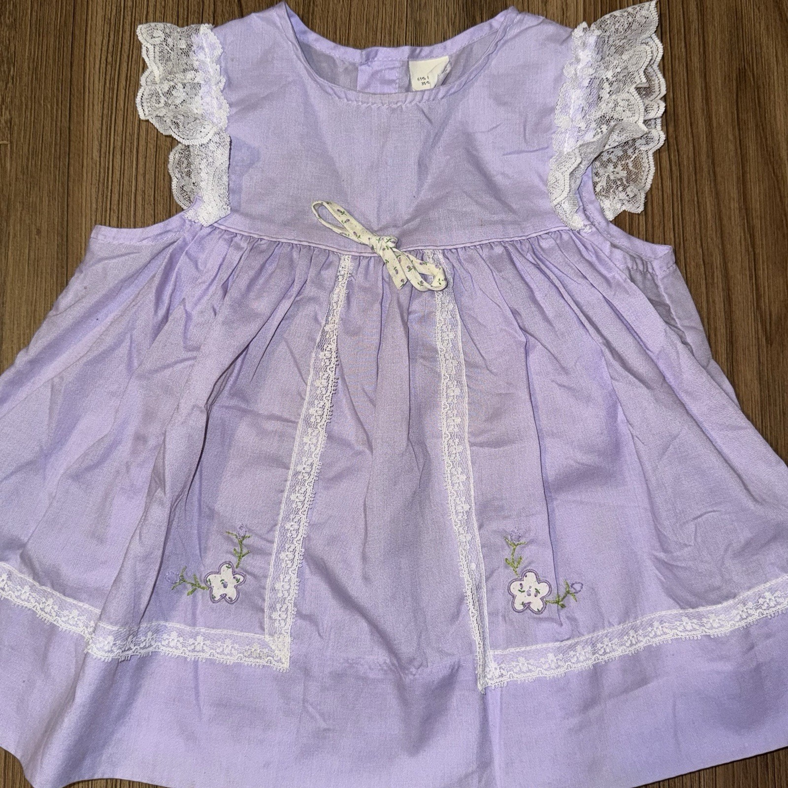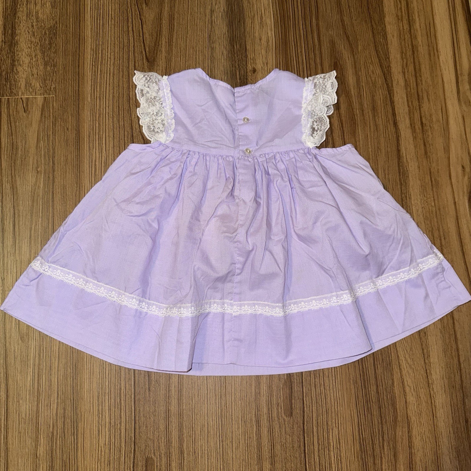 как выглядит Vintage 80s 90s Lavender Lace Ruffle Sleeve Babydoll Dress Floral Sz 3T фото