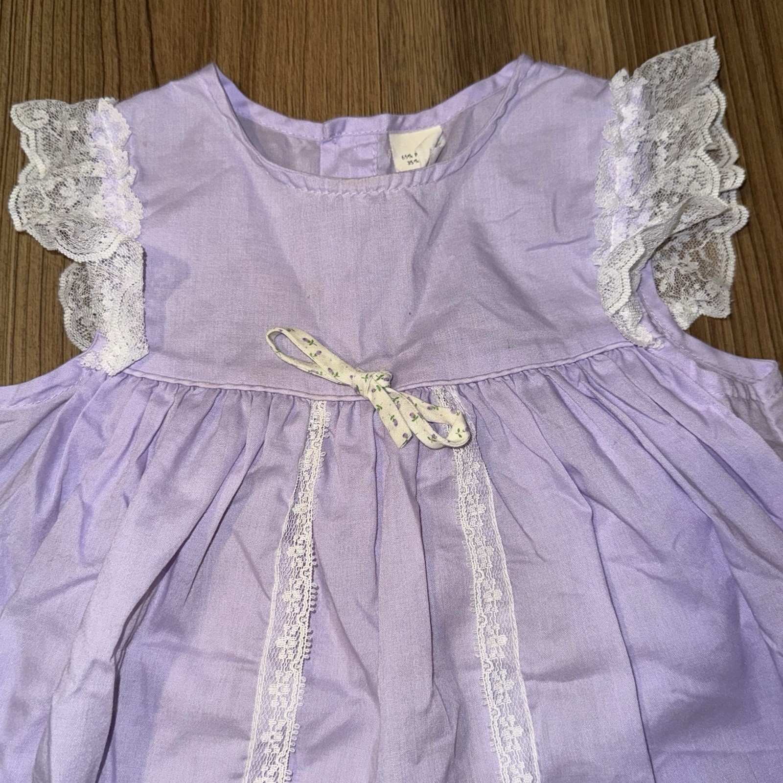 Vintage 80s 90s Lavender Lace Ruffle Sleeve Babydoll Dress Floral Sz 3T
