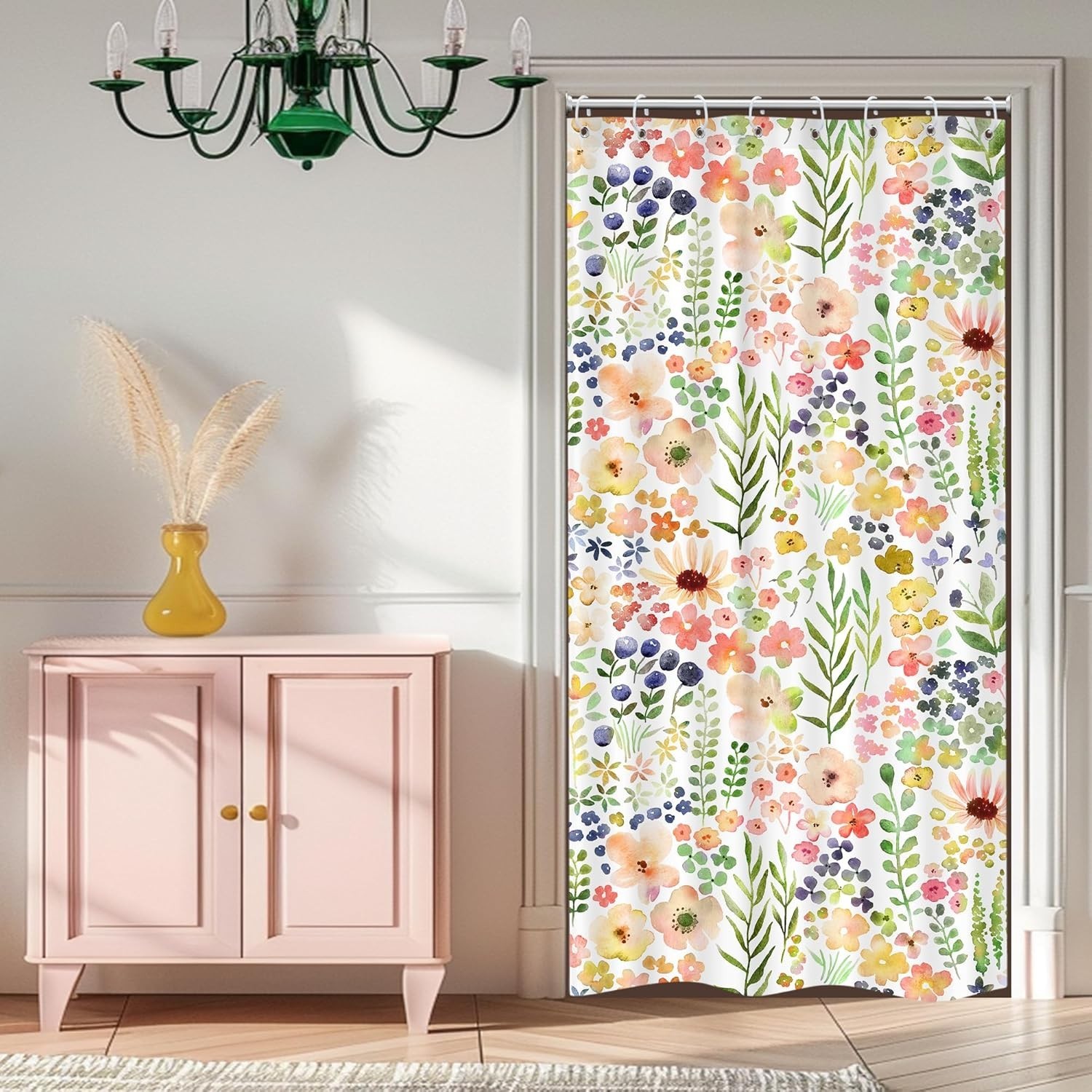 как выглядит "Small Stall RV Colorful Floral Shower Curtain 36""W x 72""L Pack of 1 01pink фото
