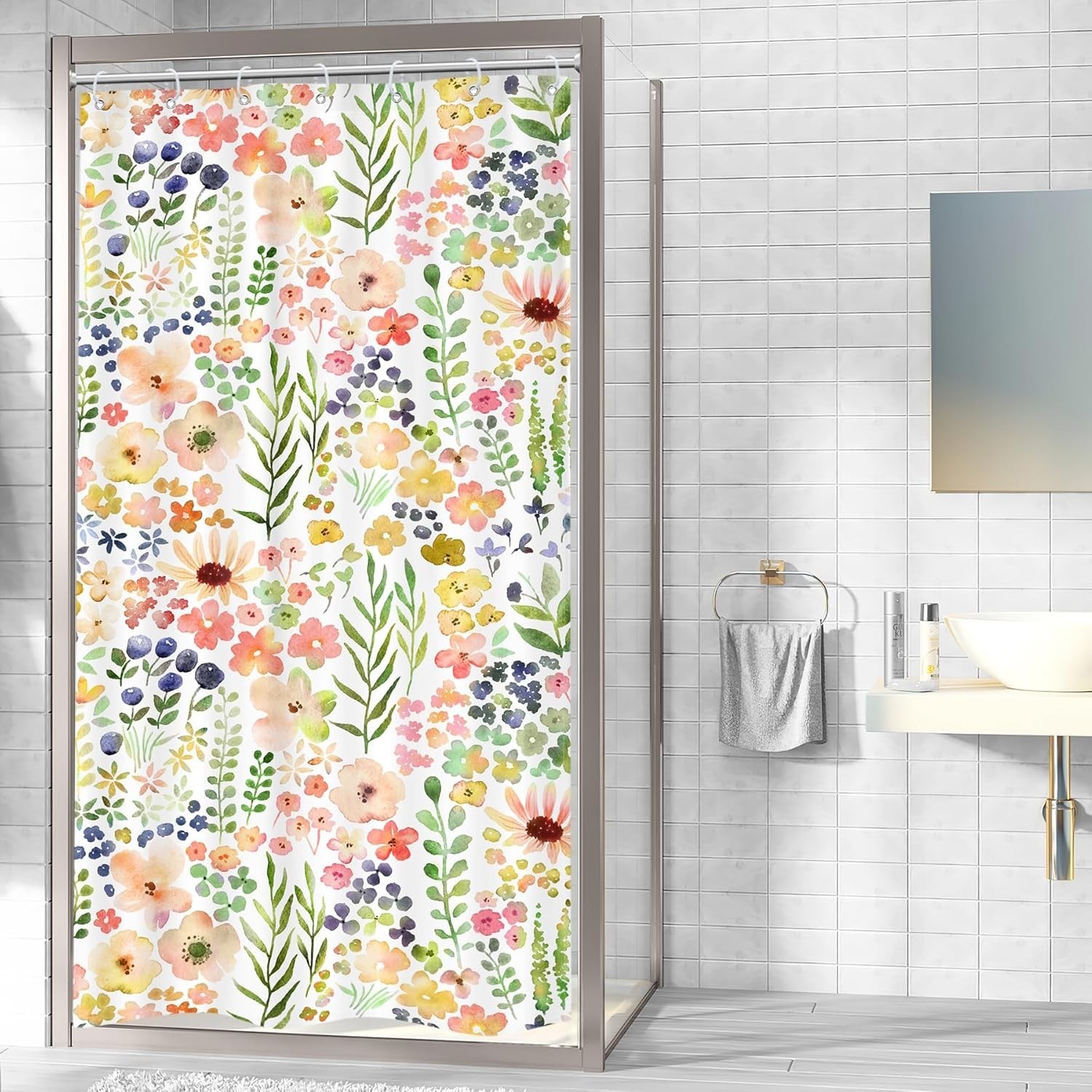 Small Stall RV Colorful Floral Shower Curtain 36W x 72L Pack of 1 01pink