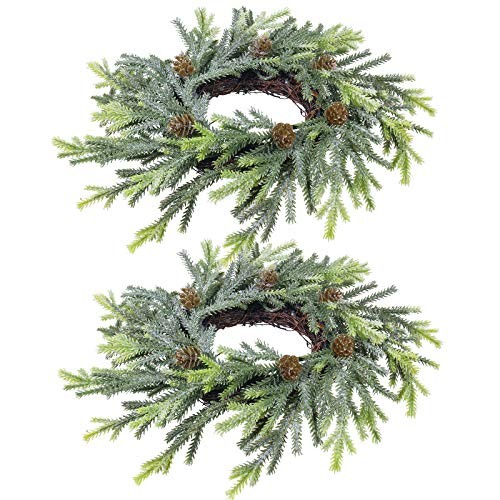 2 pcs Artificial Frosted Cedar and Pine Cone Candle Rings Christmas Candle