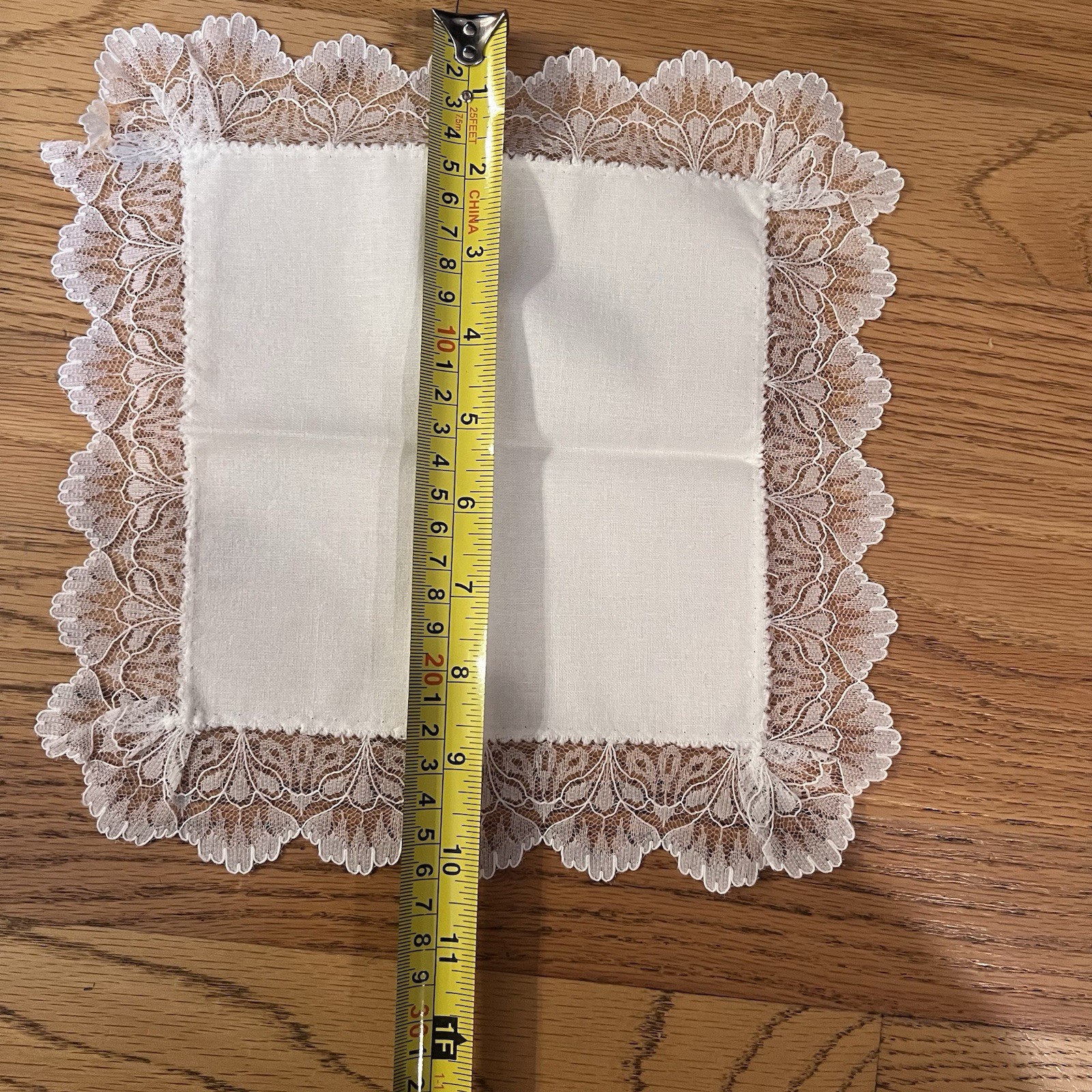 как выглядит Vintage Scalloped Lace Edge Cream Wedding Bridal Hankie 10  X 10 фото