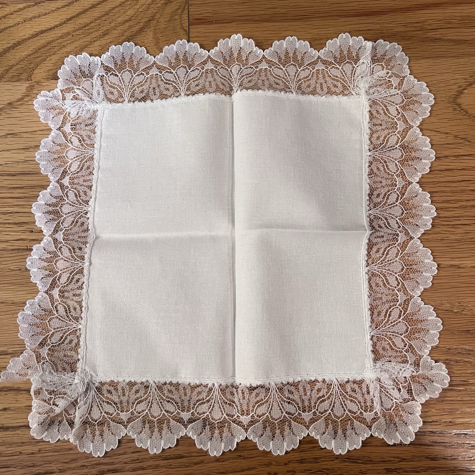 Vintage Scalloped Lace Edge Cream Wedding Bridal Hankie 10 X 10