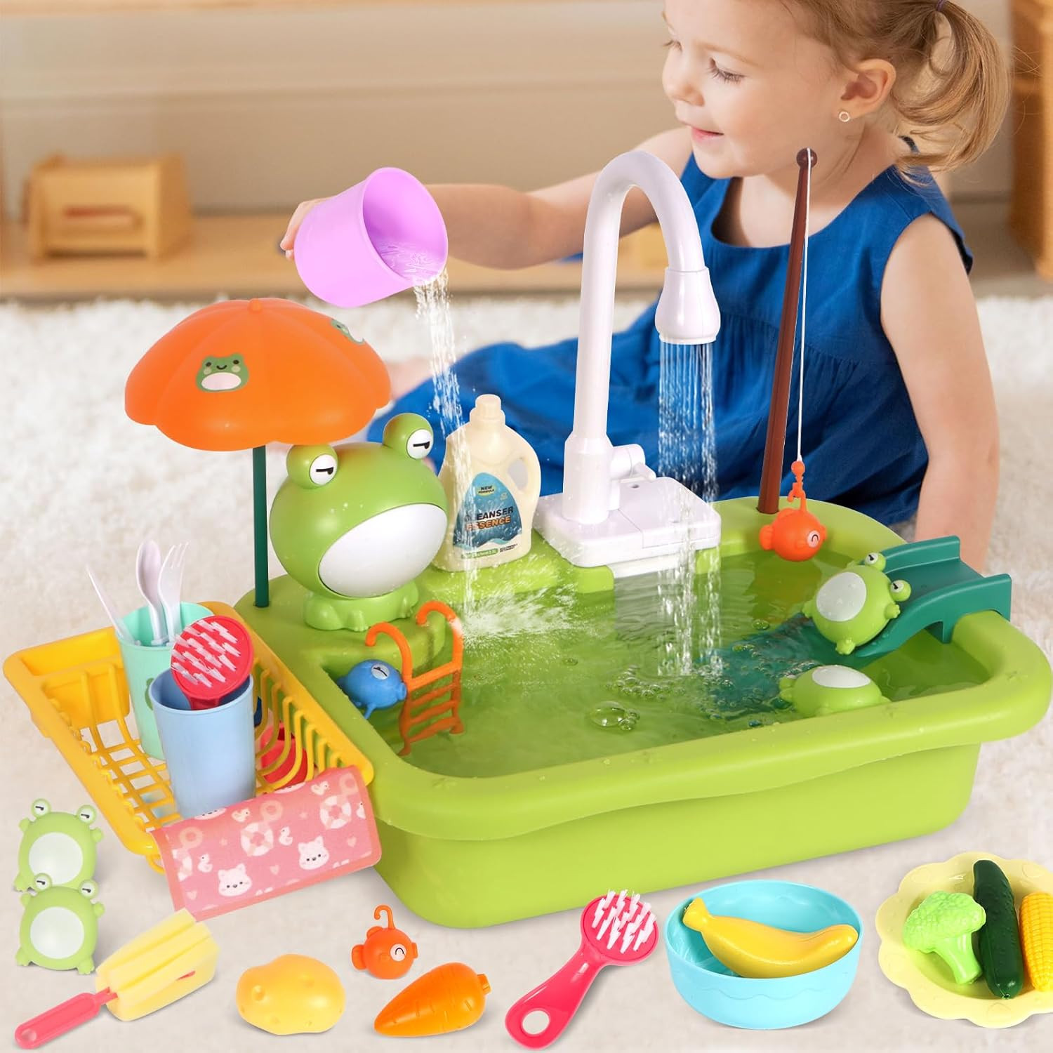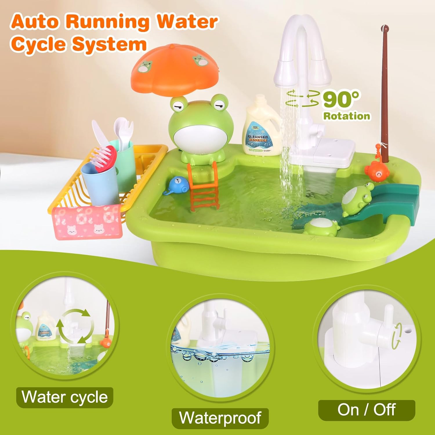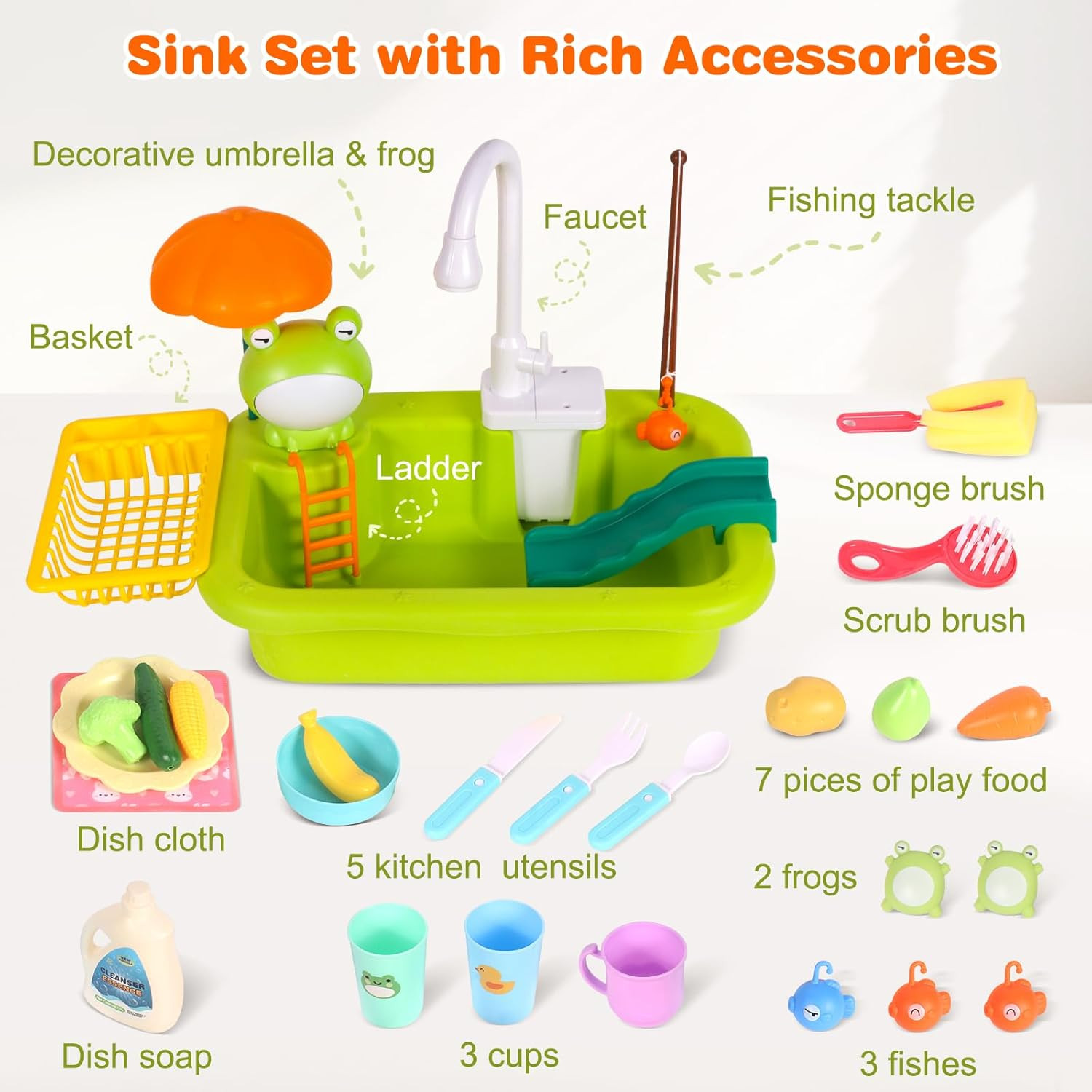 Play Sink with Running Water, Kitchen Sink Toy with Functional Faucet, Play Food