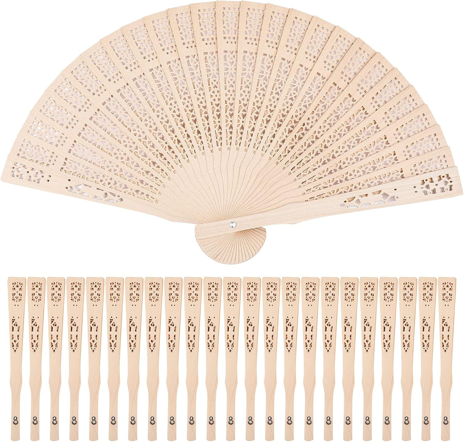 как выглядит 24 Piece Sandalwood Fans - Wooden Handheld Folding Fans, Scented, Vintage, for W фото