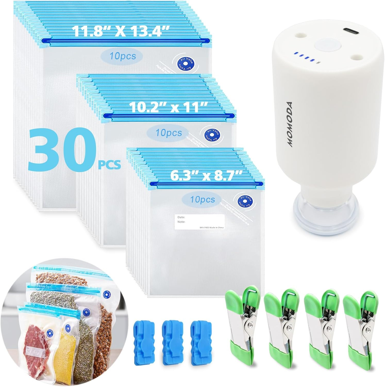 Sous Vide Cooking Bags - Set of 30 Bpa-Free Reusable Vacuum Seal Bags with Air