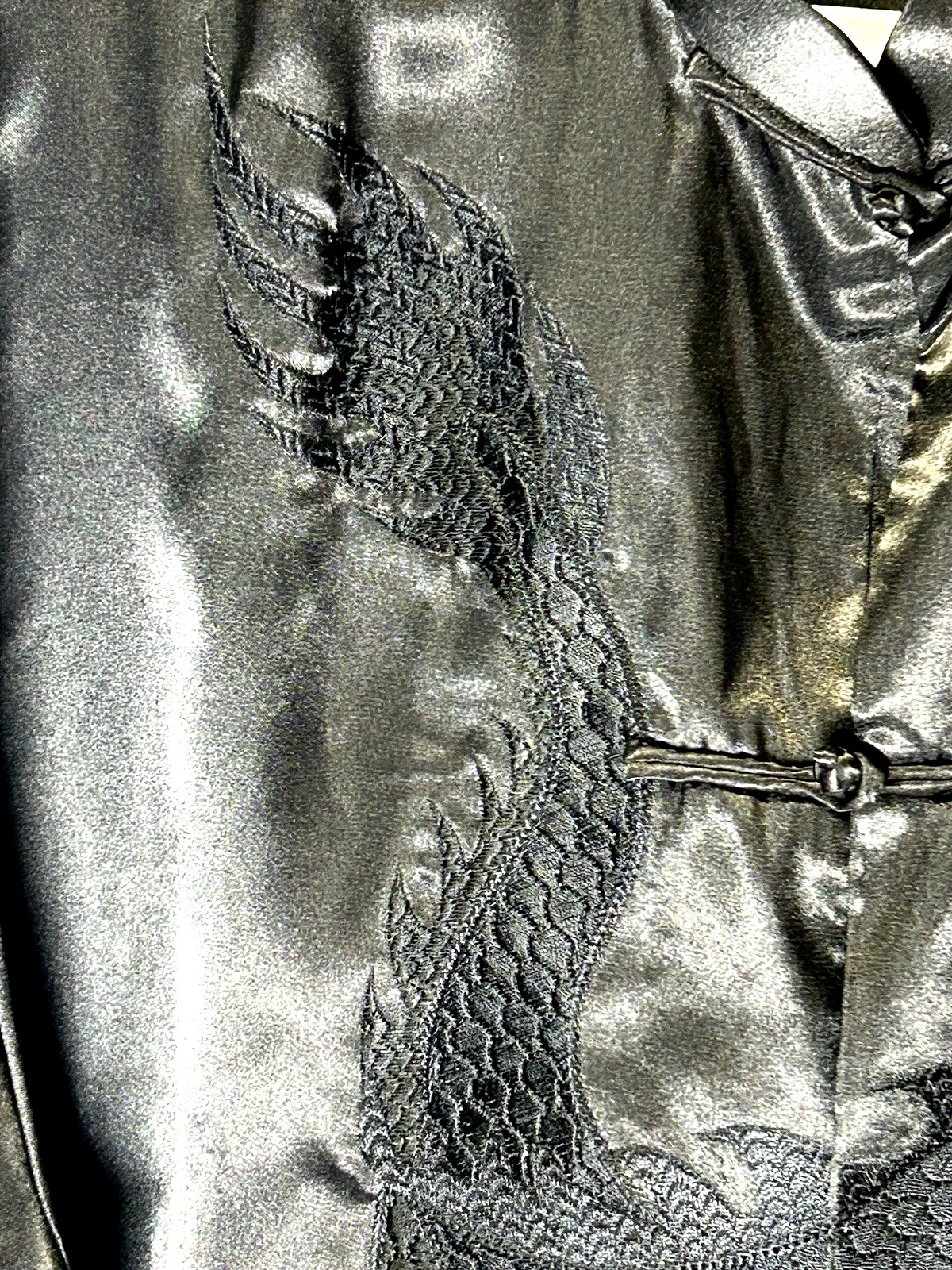 как выглядит Vintage Ling Hong Traditional Chinese Tang Satin Black Embroidered Dragon Shirt фото