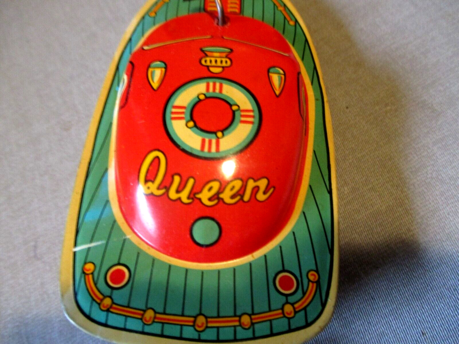 как выглядит 1950s QUEEN SPEEDBOAT- WIND UP TIN VINTAGE TOY W BOX ALAPS JAPAN-6" N-MINT фото