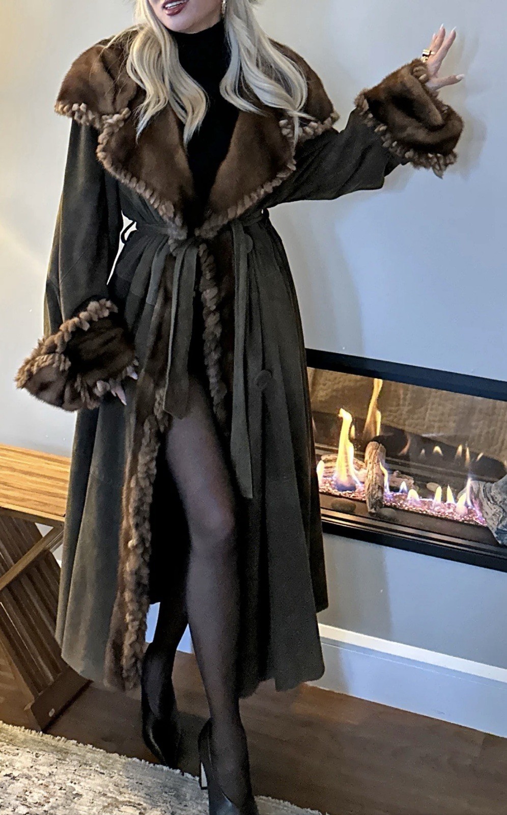 как выглядит Vintage 1980s Fendi Womens Green Suede Mink Coat Size IT40 фото
