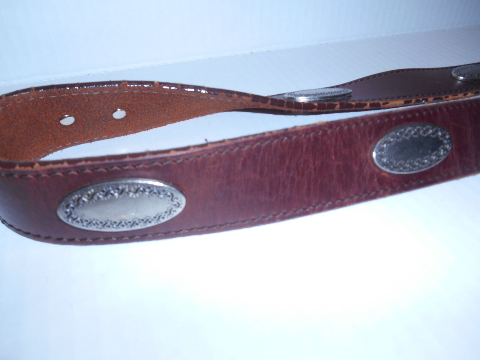 как выглядит Brown Leather Southwest Cowboy Conchos Medallions Belt Size S Stirrup Buckle фото