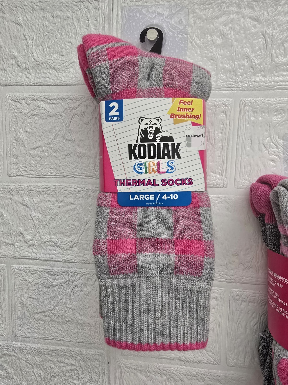 Bundle of two packs 4pc Kodiak Girl's Thermal Socks, Sz 4-10