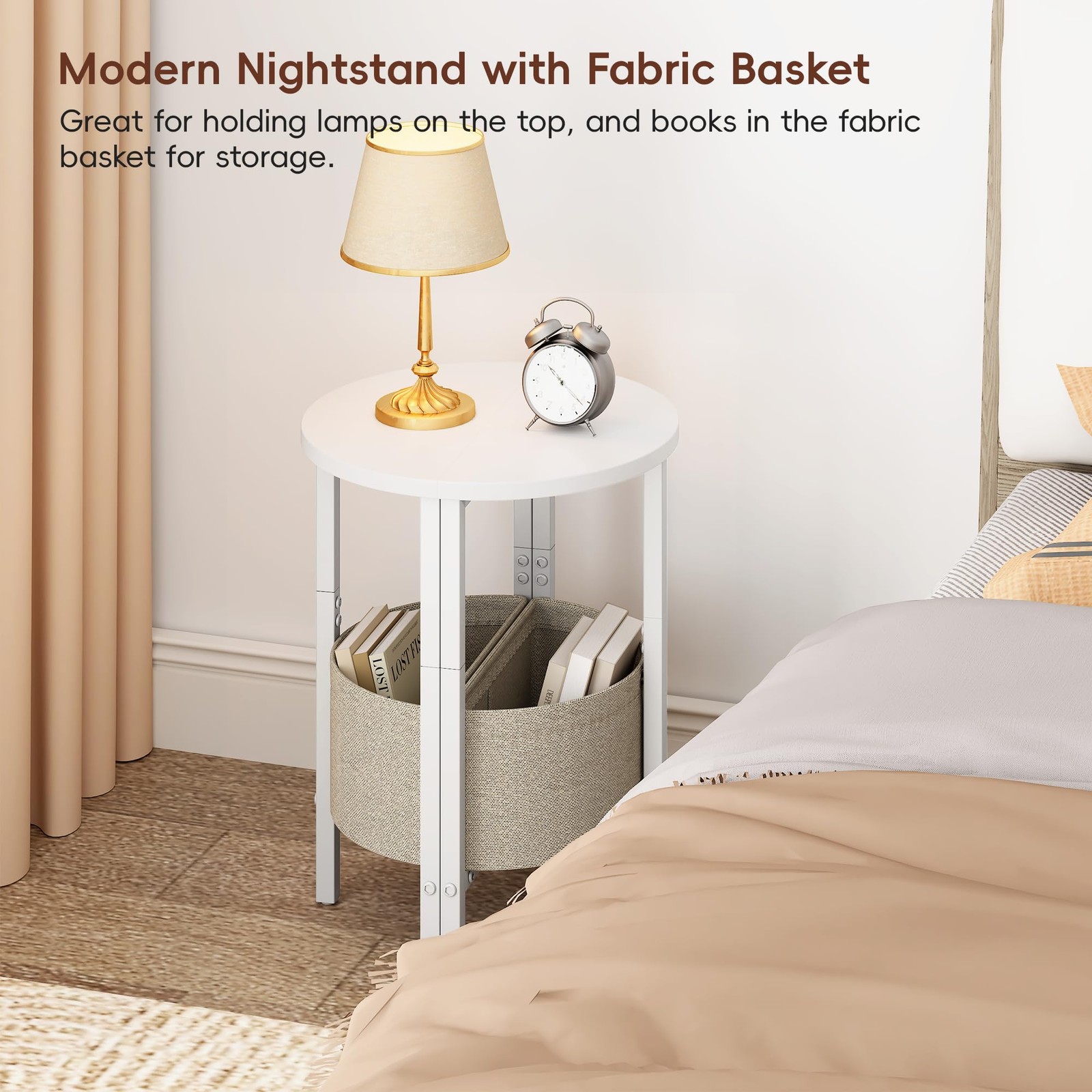 Side Table, Small Round End Table, Tall Accent Table with Storage Basket, Set...
