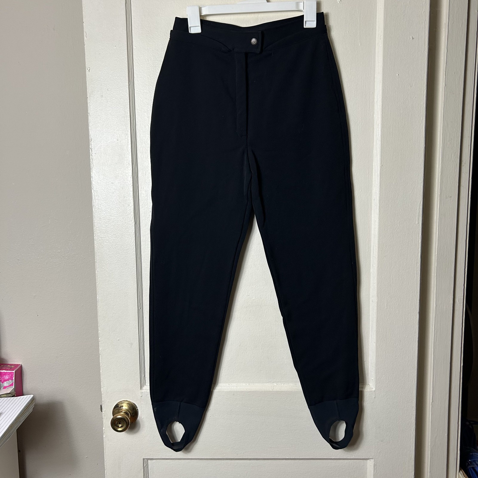 как выглядит Vintage black wool nylon stirrup ski pants womens 12 zipper waist фото