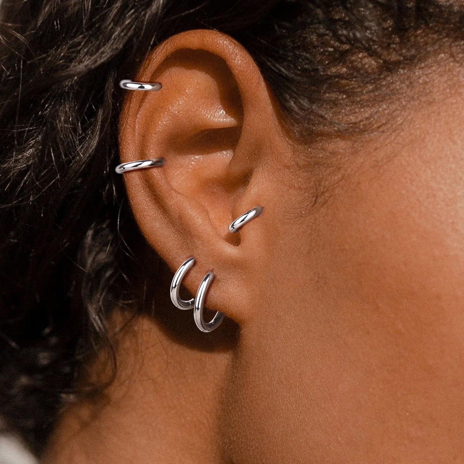 как выглядит 5 Pairs 316L Stainless Steel Small Hoop Earrings Set for Women, Cute Huggie Earr фото