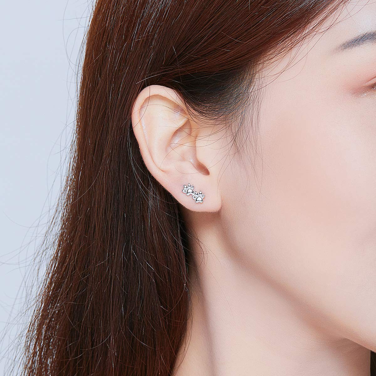 Lovely Puppy Paw Print Stud Earrings Sterling Silver for Women Girls Cute Animal
