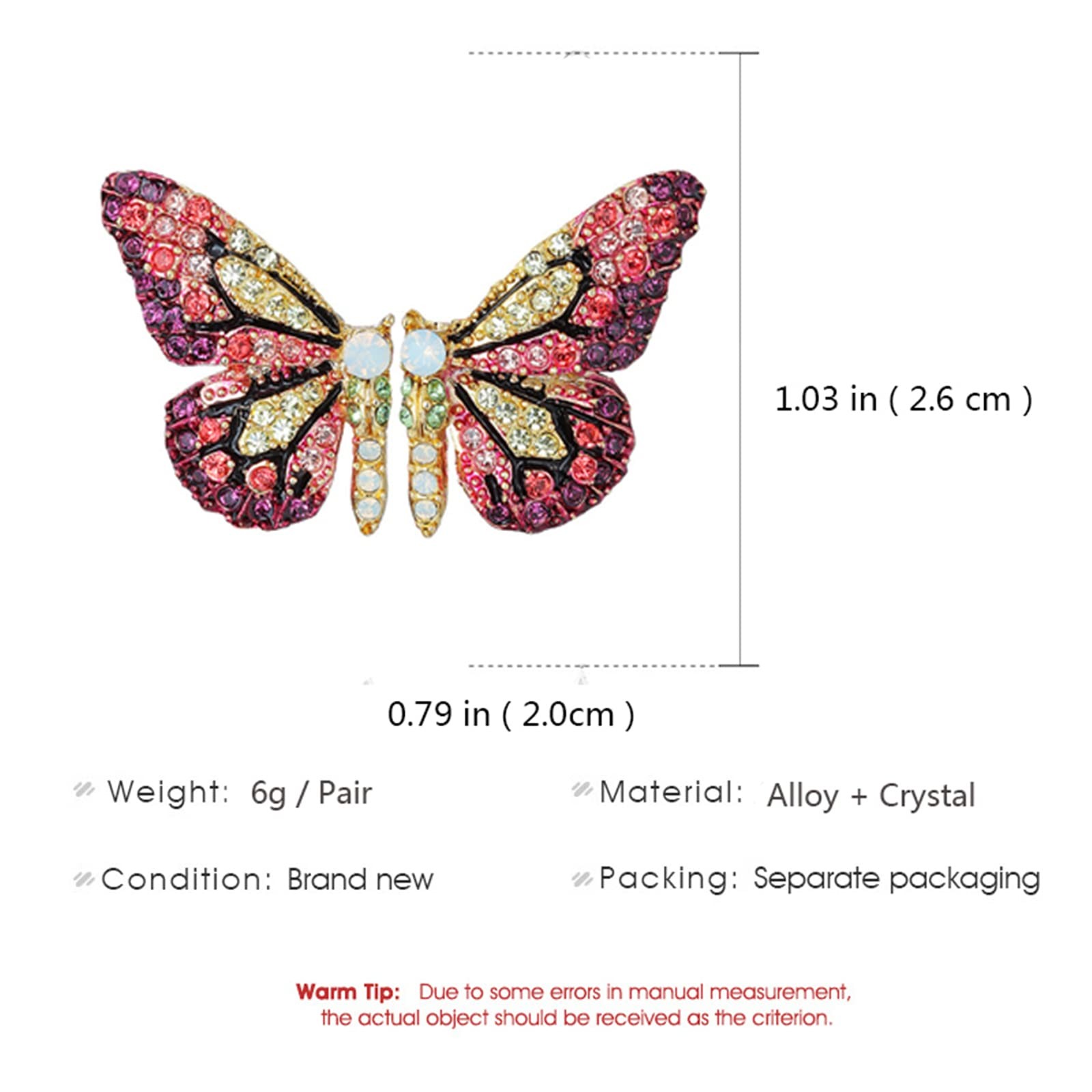 Butterfly Stud Earrings for Women Colorful Handmade 3D Crystal Fairy Animal Earr