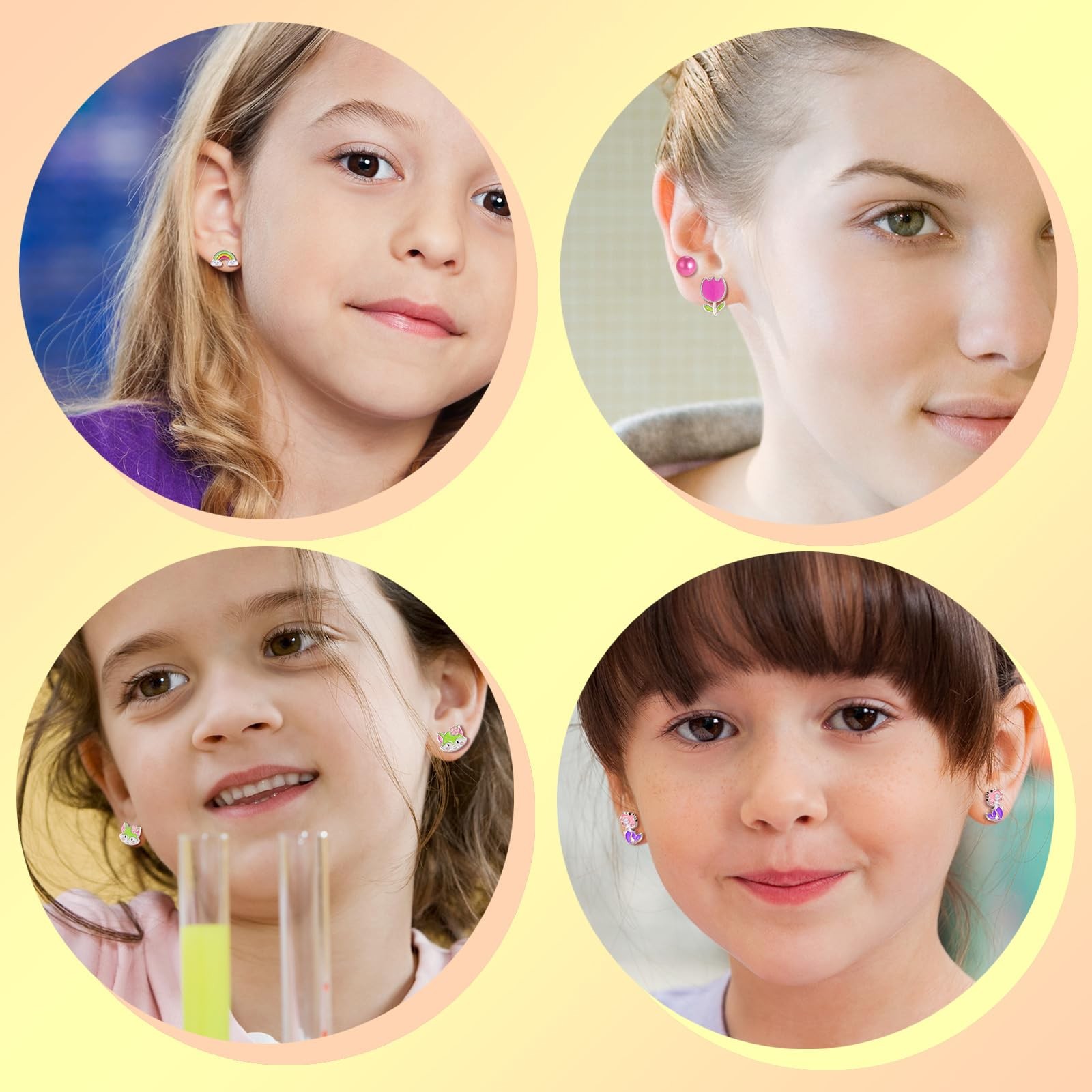 60 Pairs Cute Earrings Set - Hypoallergenic Stainless Steel Studs with Cartoon C