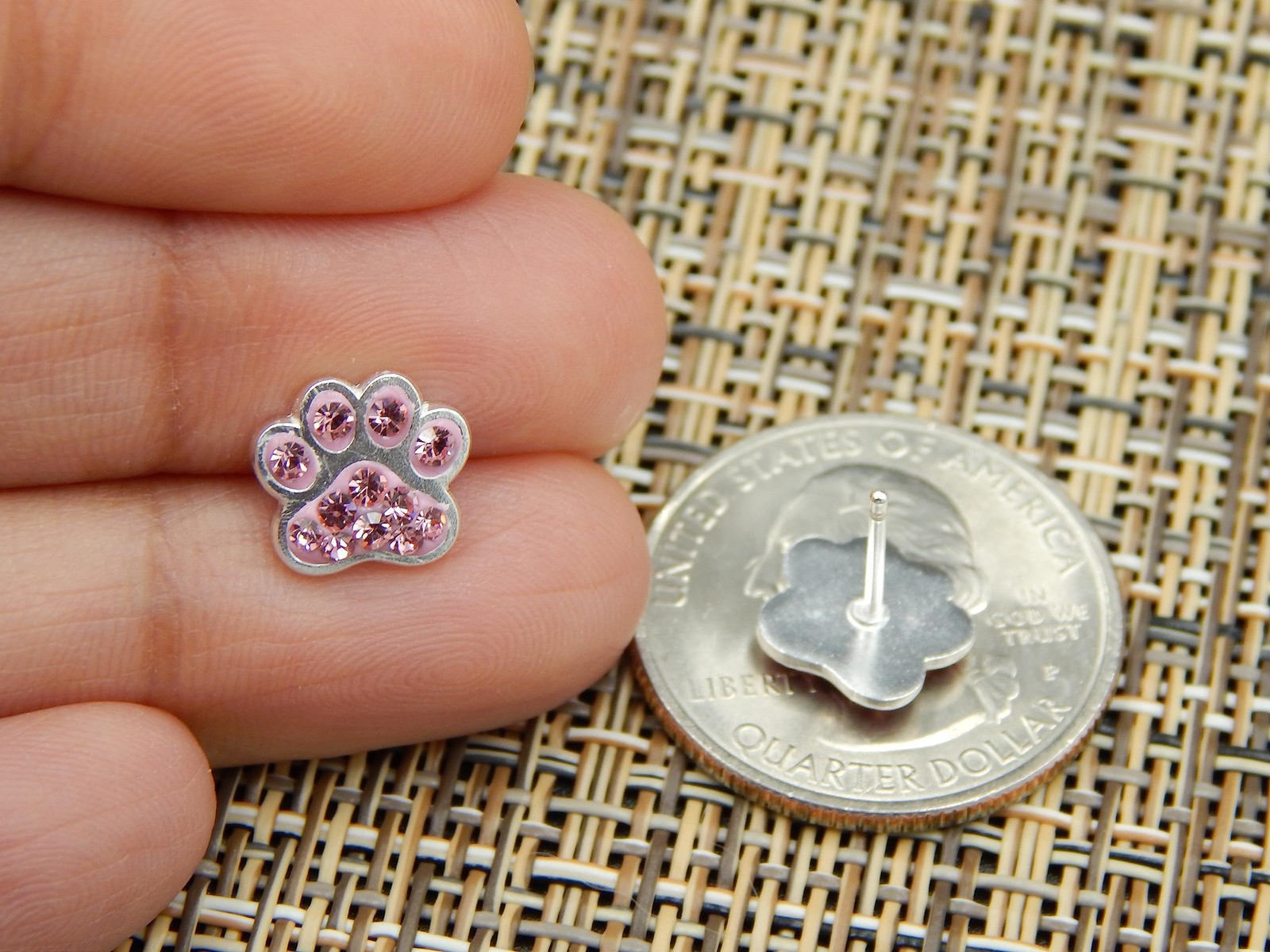 Solid 925 Sterling Silver Crystal Paw Print Stud Earrings Choose Your Color P