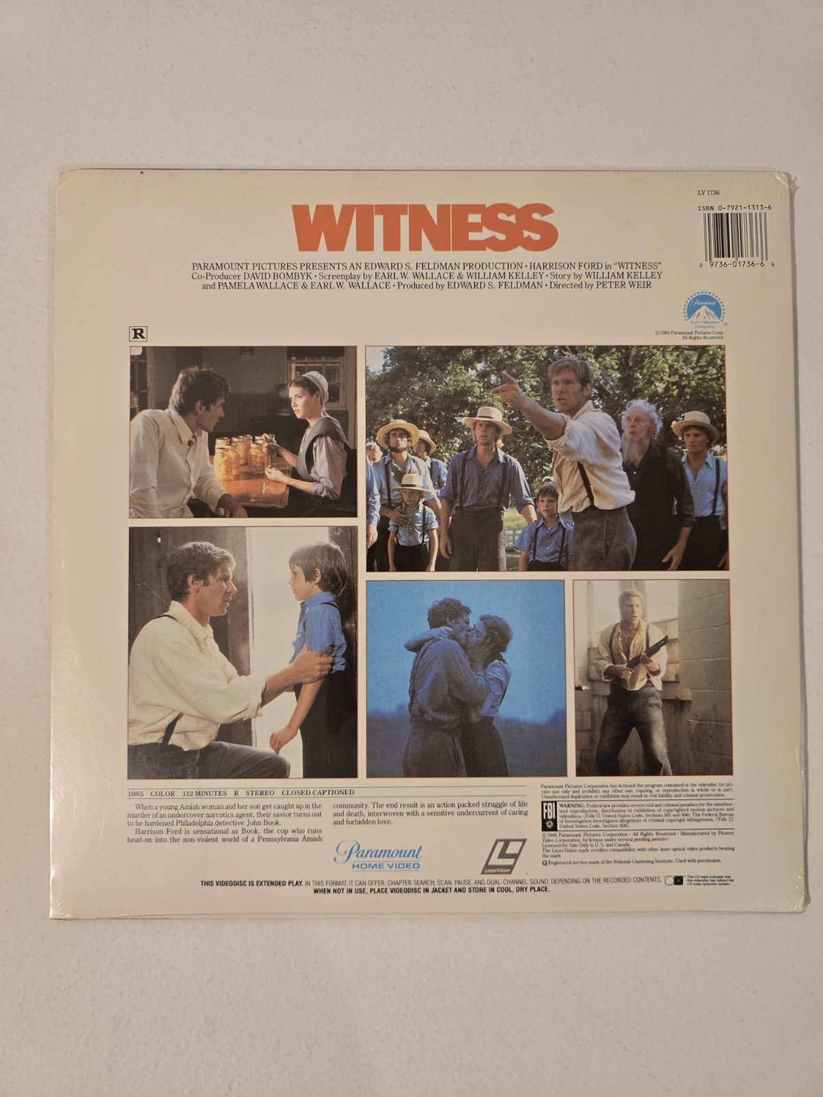 WITNESS. Sealed Lazerdisc Harrison Ford.