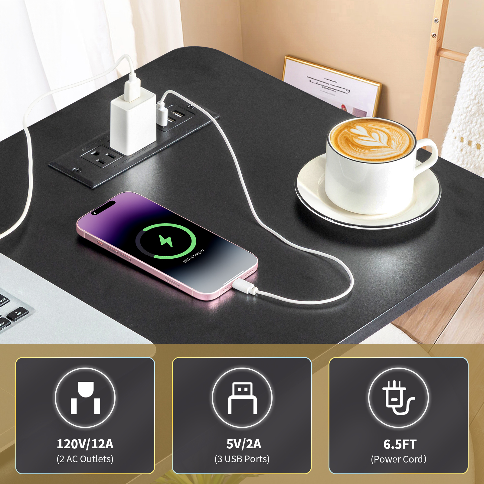 Power Laptop Desk Hospital Table Rolling Cart Height Adjustable Over Bed Stand