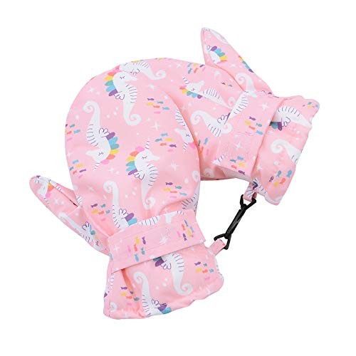 Lined Fleece Toddler Mittens Kids Winter Warm M Fits 2-3 Years Pink Seahorse