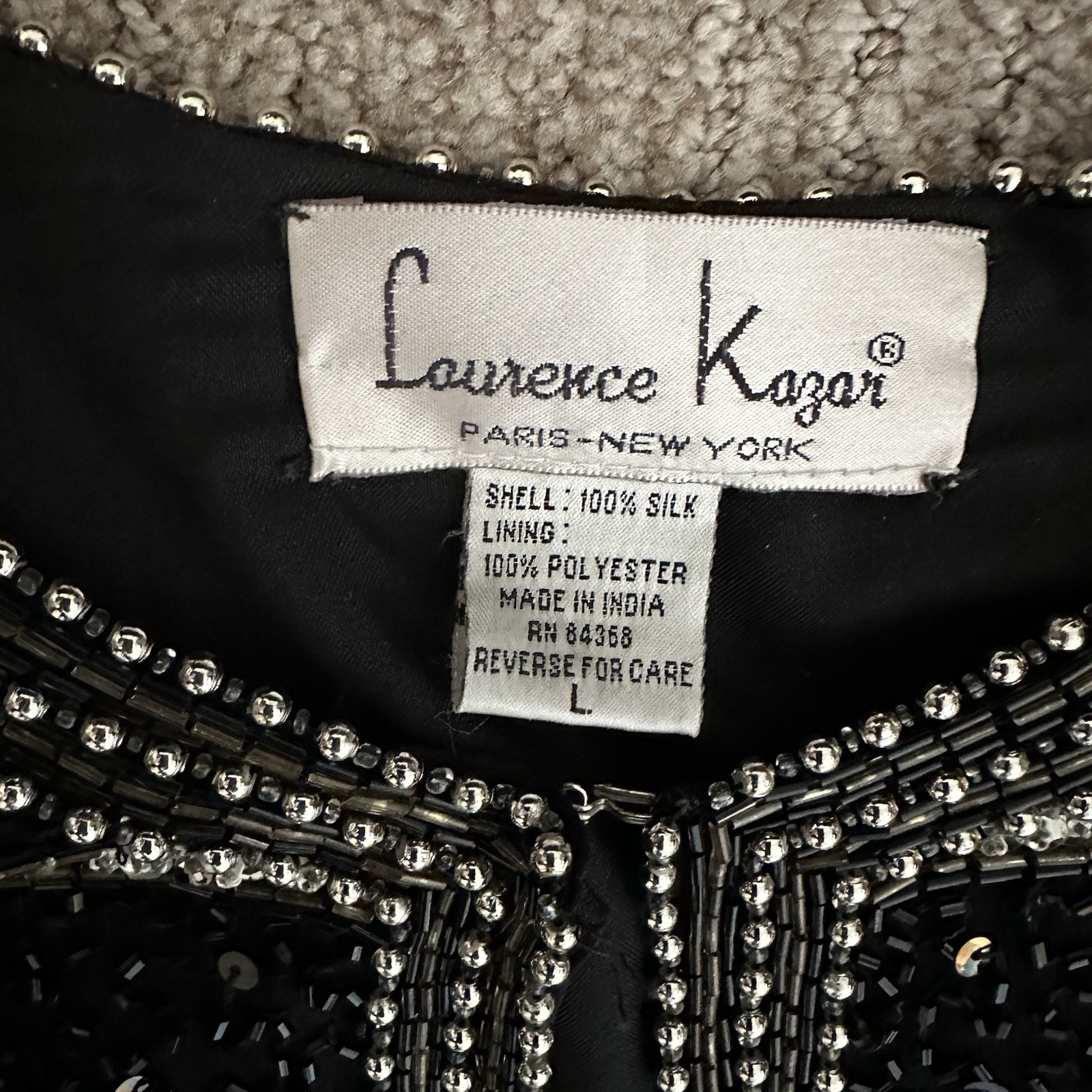 NEW VTG Beaded Silk Jacket Large Laurence Kazar Evening Bow NYE Holiday NWT
