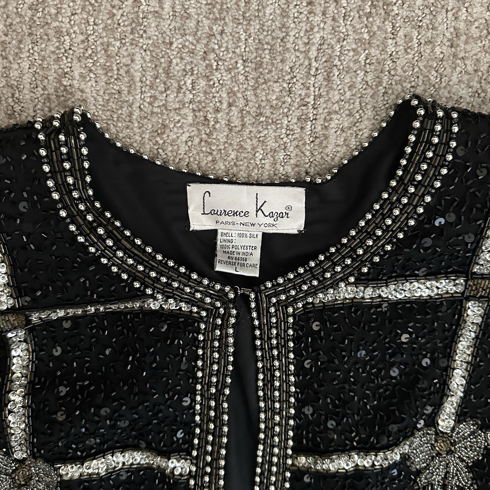 как выглядит NEW VTG Beaded Silk Jacket Large Laurence Kazar Evening Bow NYE Holiday NWT фото