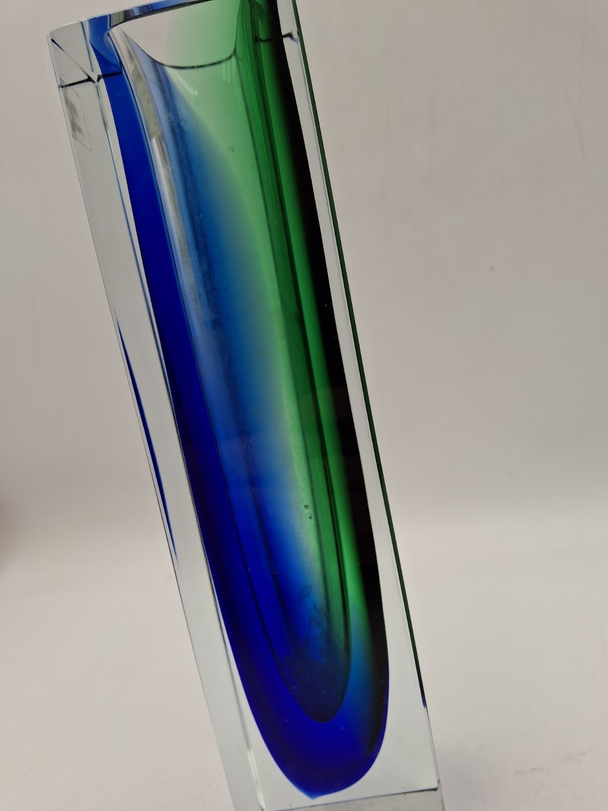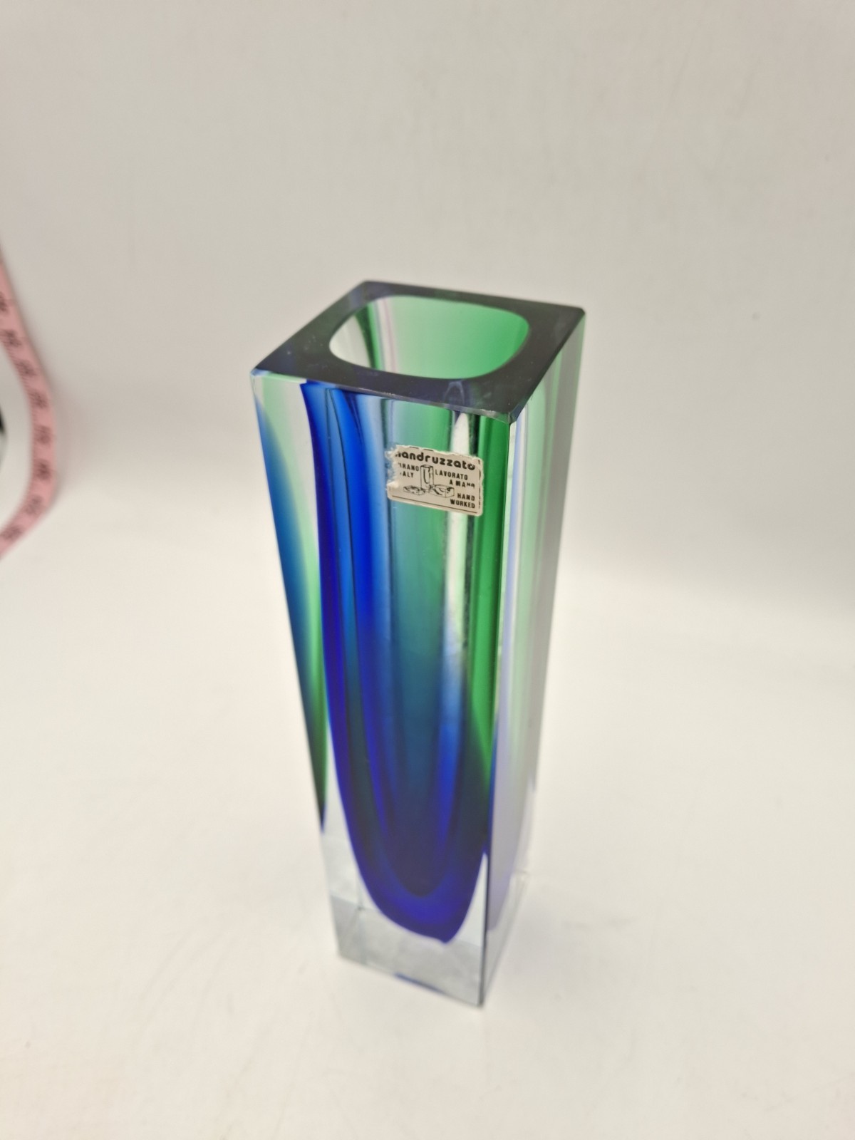 как выглядит Murano Mandruzzato Hand Worked Blue And Green Block Vase фото