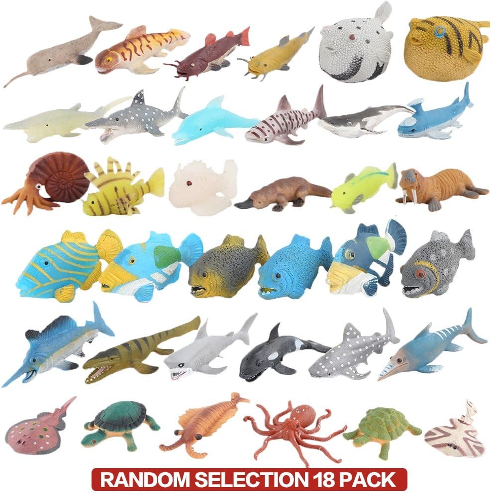 18 Pack Assorted Ocean Animal, Stretchy and Floating Rubber sea Animals Toy...