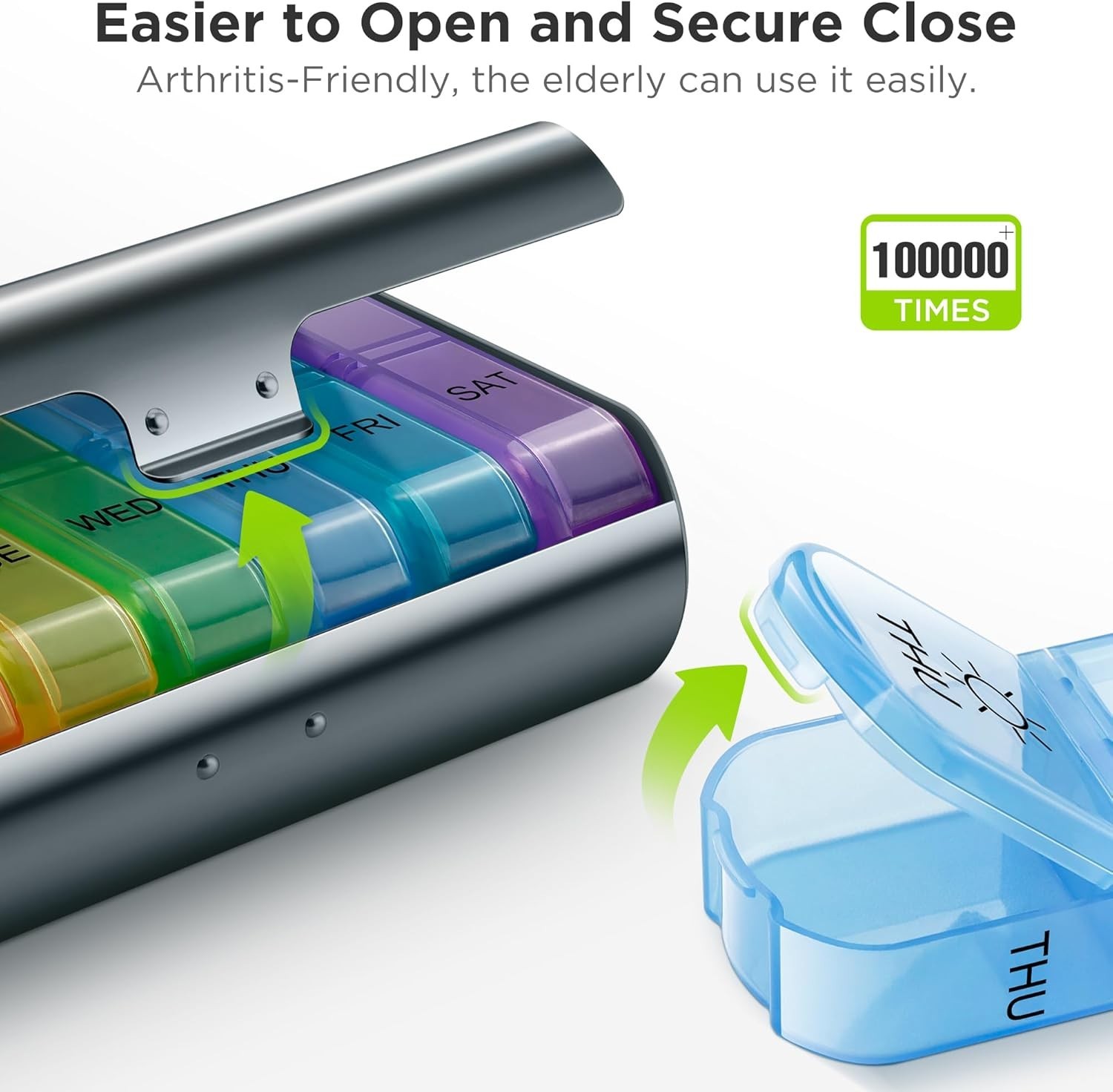 Metal XL Weekly Pill Organizer 2 Times a Day, Large Travel Daily Pill Box 7 D...