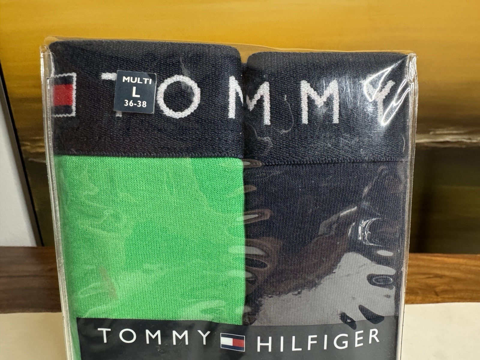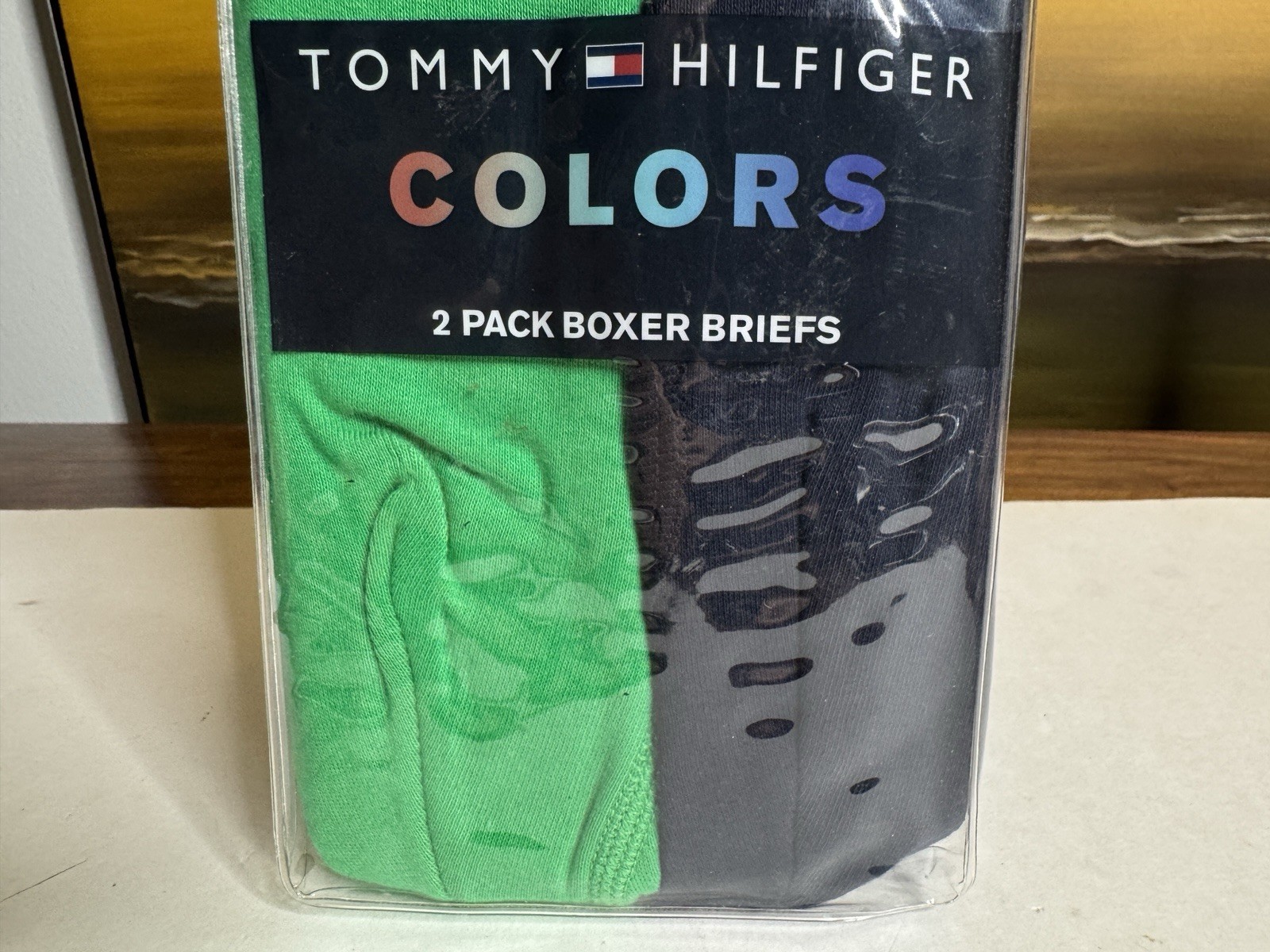 как выглядит Tommy Hilfiger Colors Mens 2 Boxer Briefs Cotton Solid Green Navy Large NEW фото
