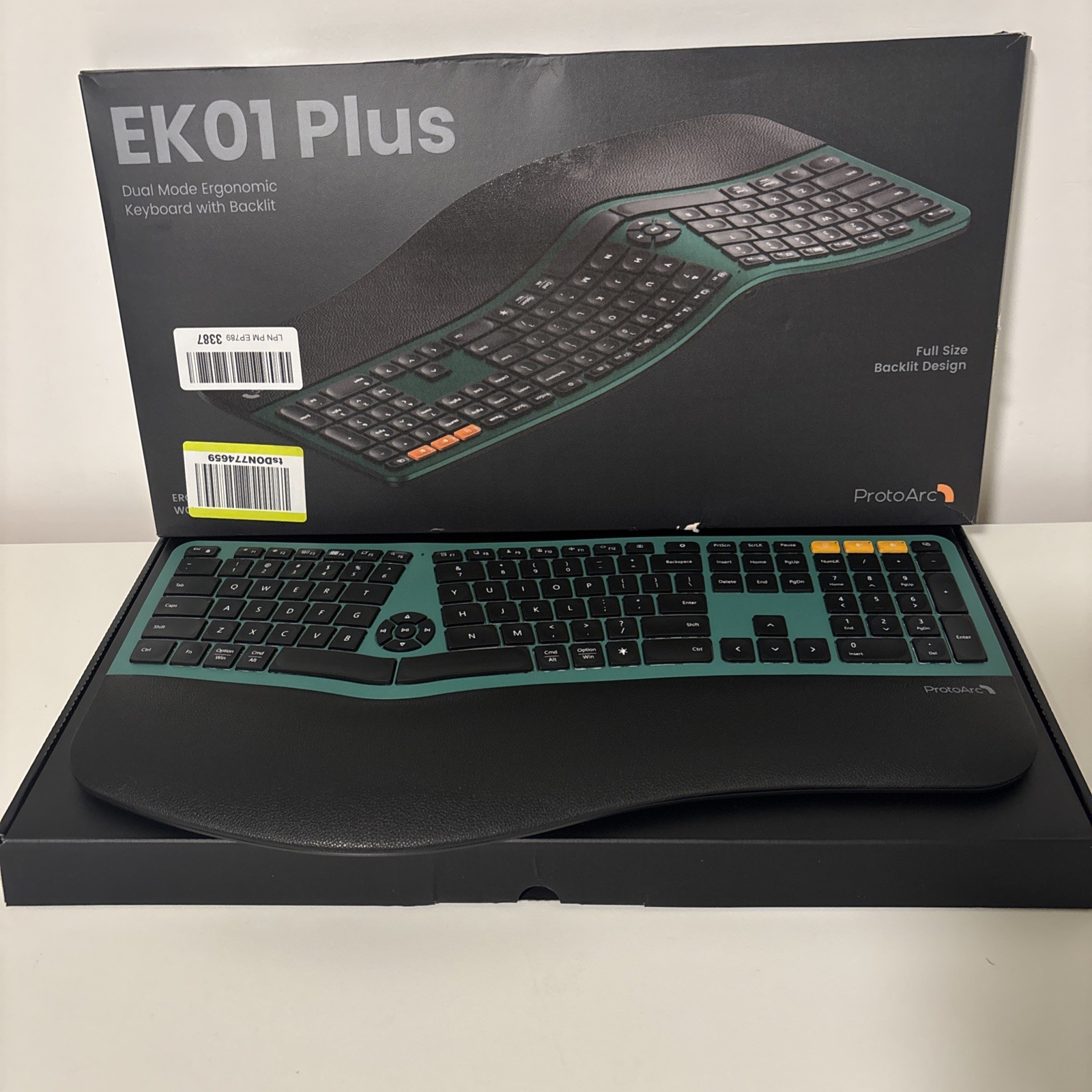 ProtoArc EK01 Plus Backlit Wireless Ergonomic Workspace Keyboard Full Size NIB