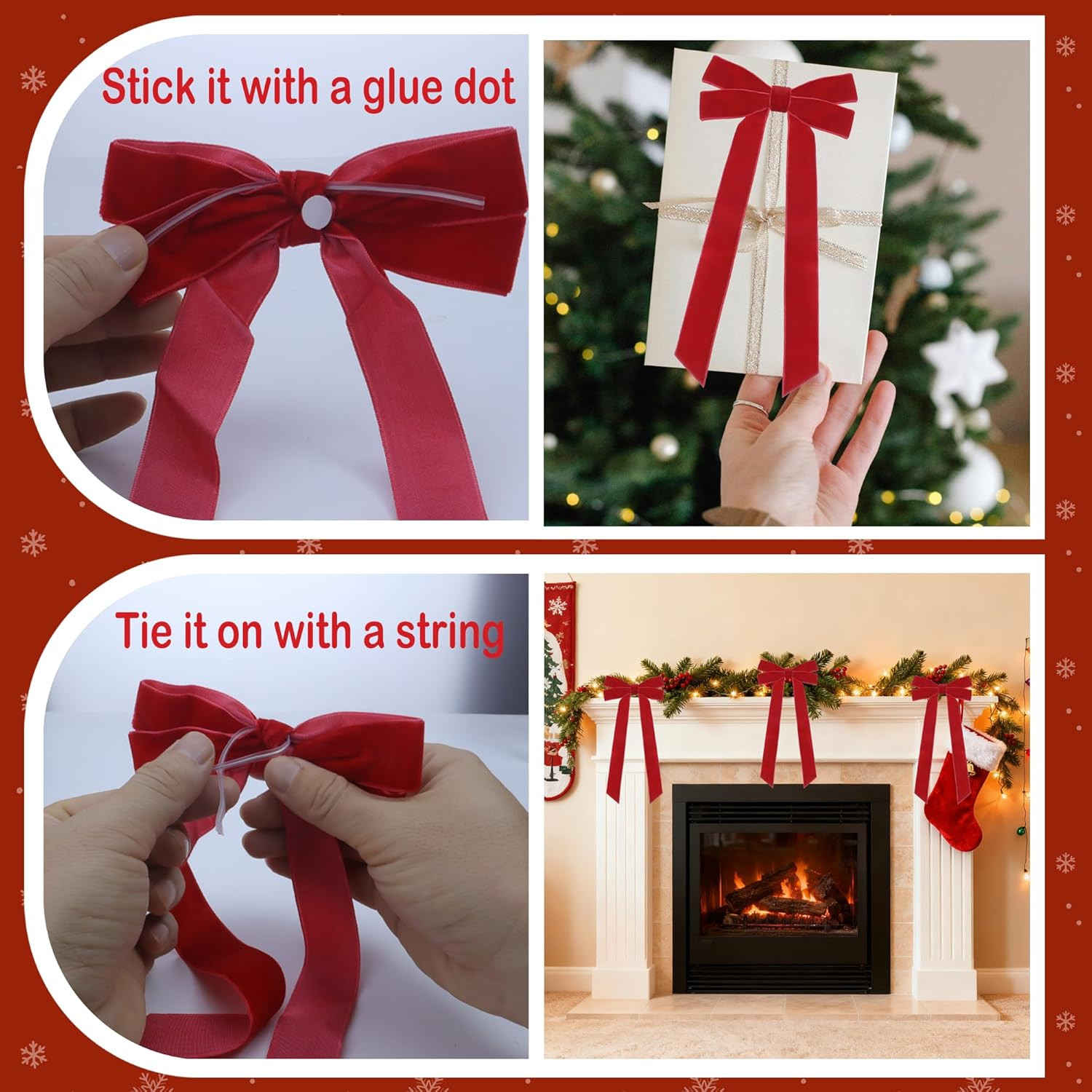 15 Red Velvet Ribbon Bows for Christmas Tree and Decor, 5x10x1 Inches