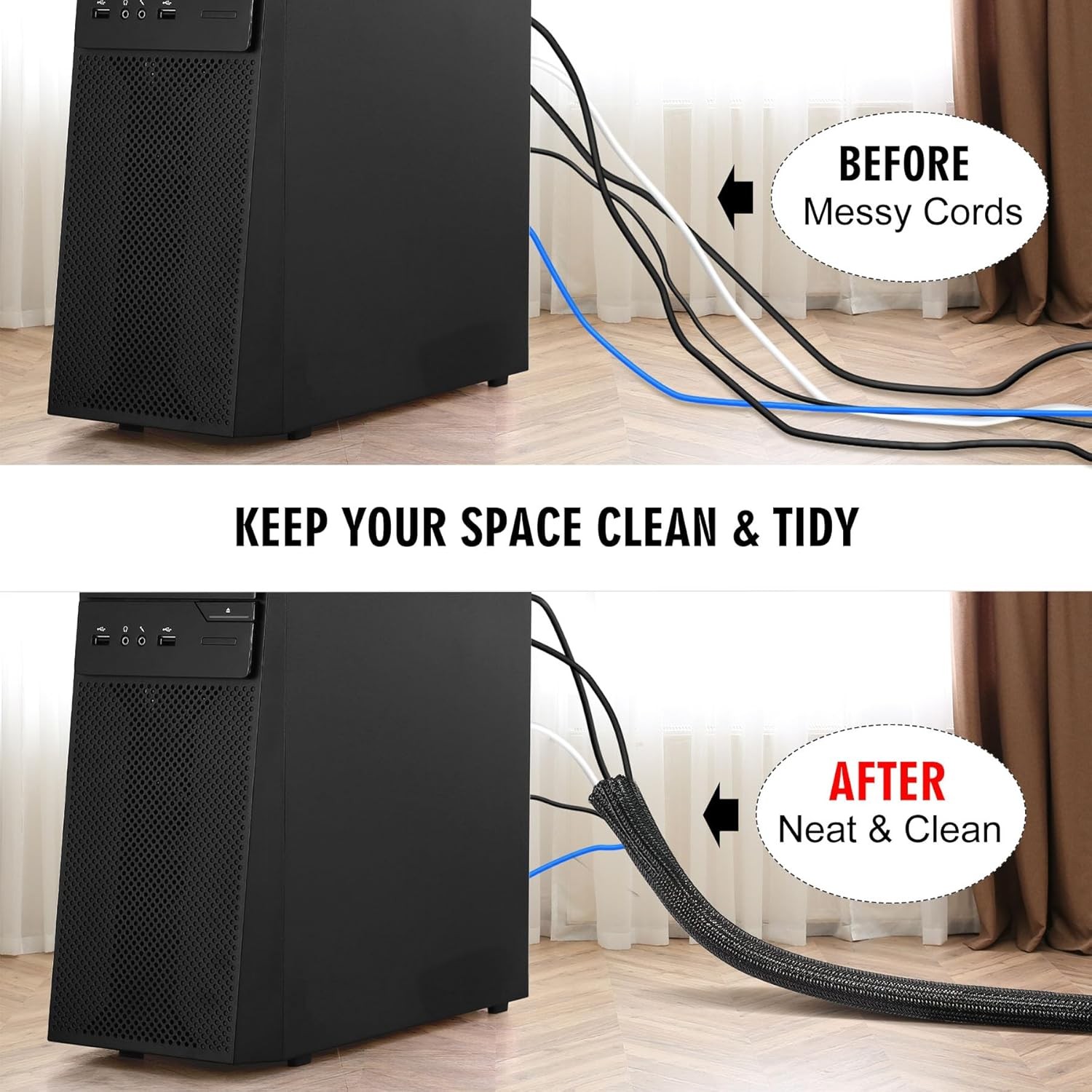 как выглядит 10ft - 1/2 inch Cord Protector Cable Sleeve Split Wire Loom Tubing for Power Cor фото