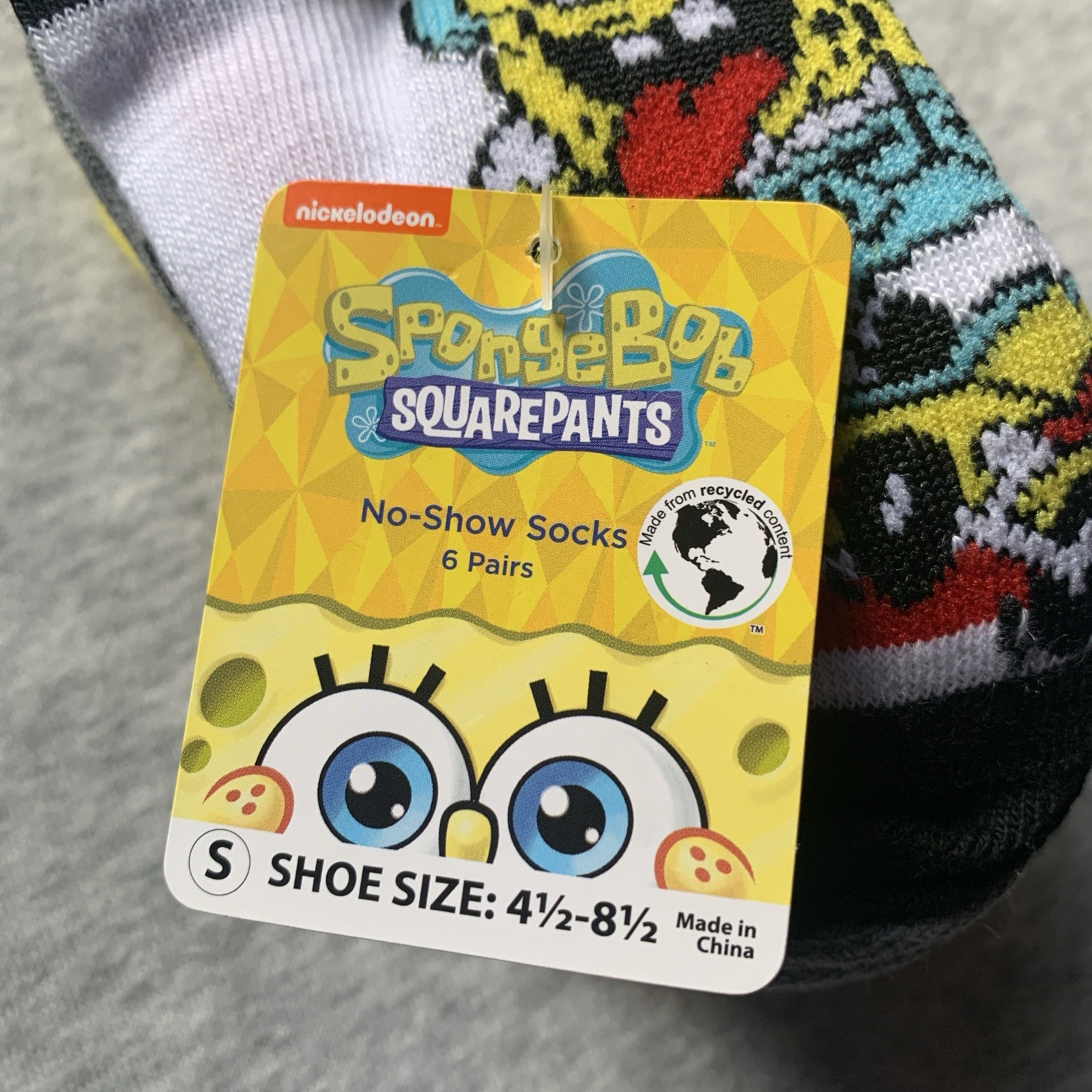 SpongeBob SquarePants Boys No Show Socks 6 Pack Size Small Shoe Size 4 1/2-8 1/2
