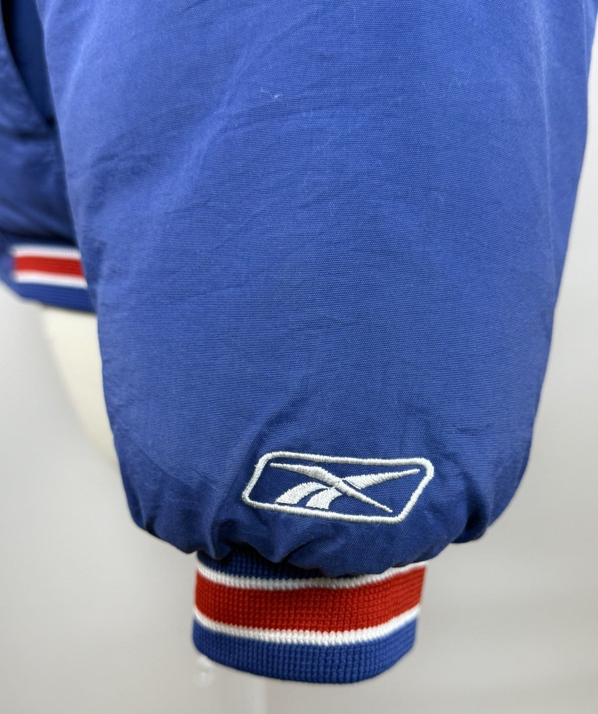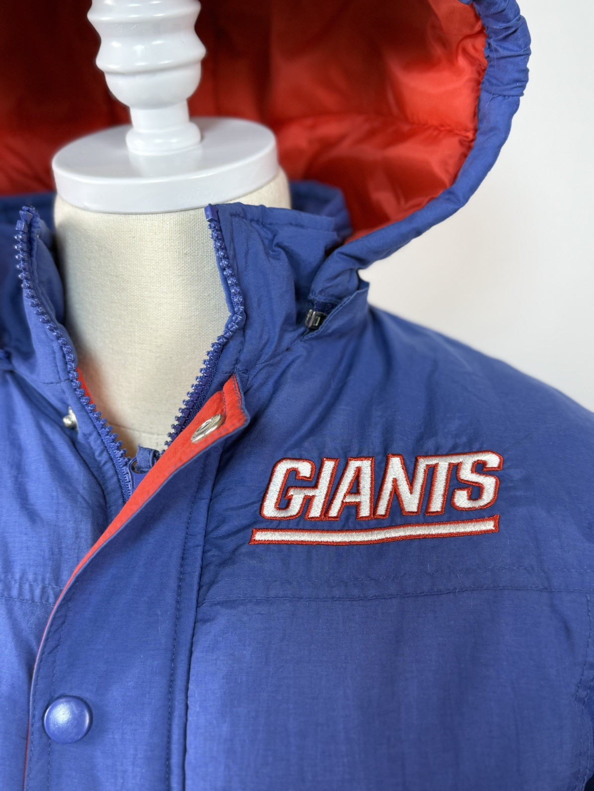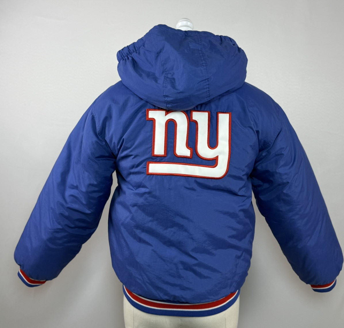 • New York Giants Puffer NFL Reebok Hoodie Full Zip Blue Jacket Med 10-12