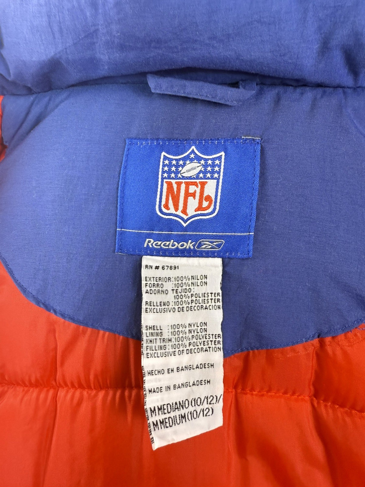 New York Giants Puffer NFL Reebok Hoodie Full Zip Blue Jacket Med 10-12